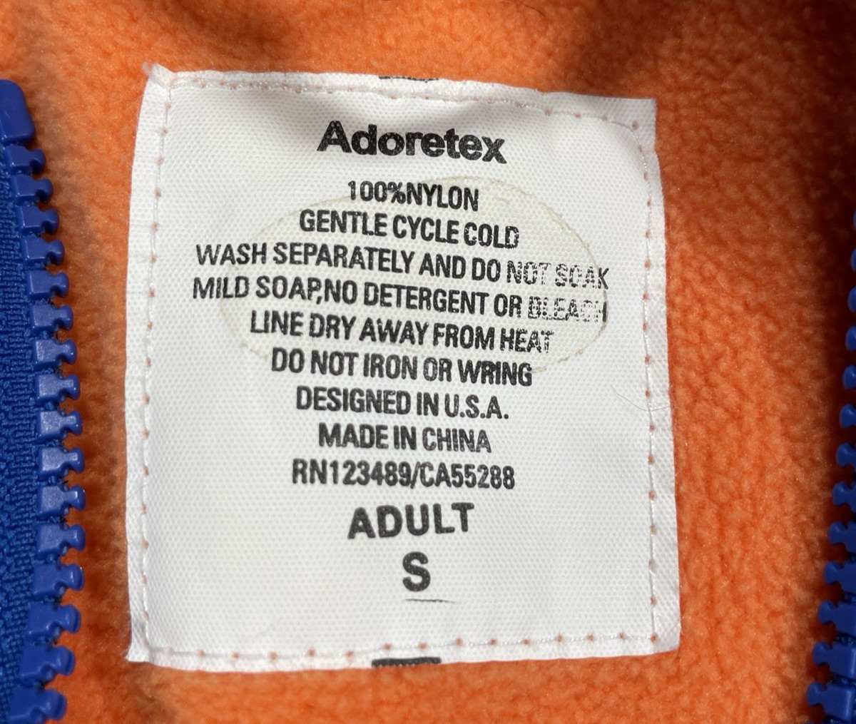 Adoretex Swim Parka Water Resistant Adult S Blue/Orange Fleece Lined Unisex