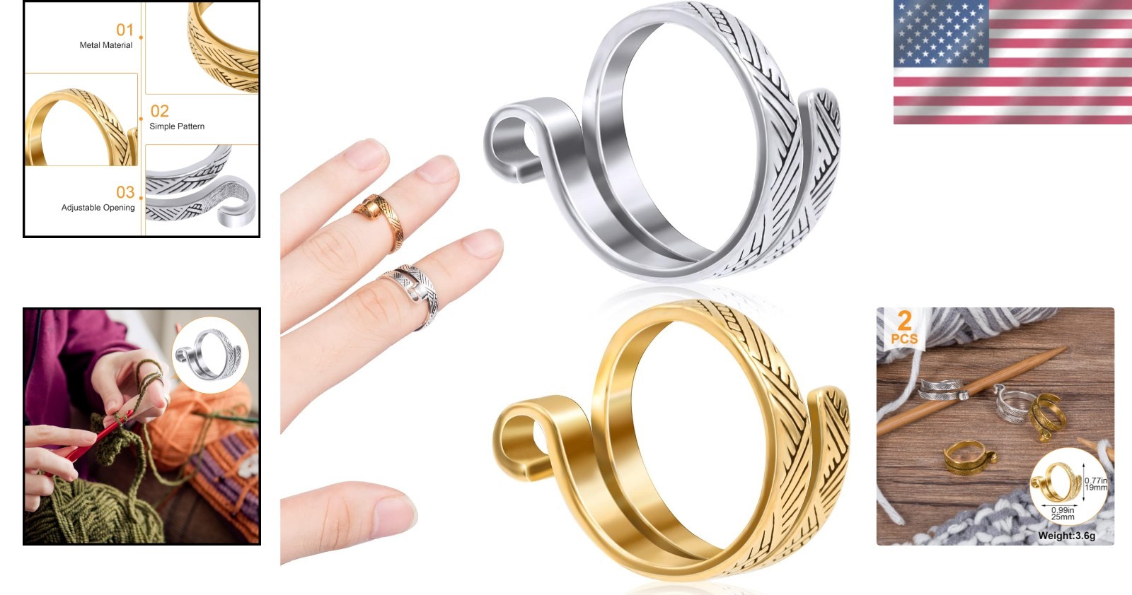 как выглядит Adjustable Knitting Crochet Loop Rings 2 Pack Gold and Silver Finger Holders фото