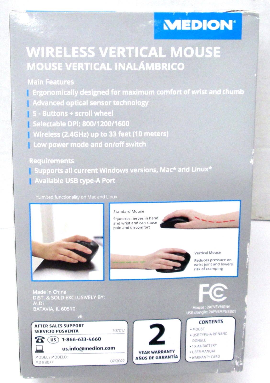 New Medion Wireless Ergonomic Vertical Mouse in Black