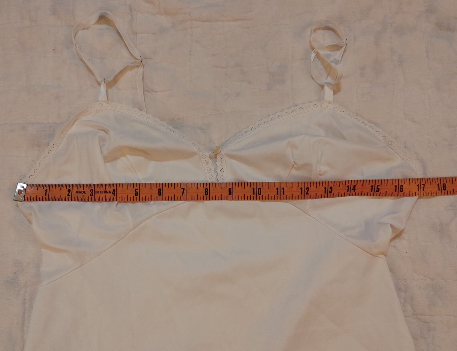 Vintage 70's Vanity Fair Full Slip White sz 36/L Nylon Lace Dress Made in USA