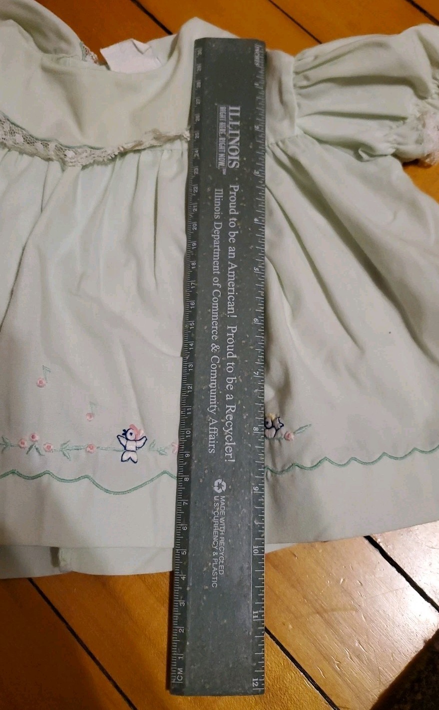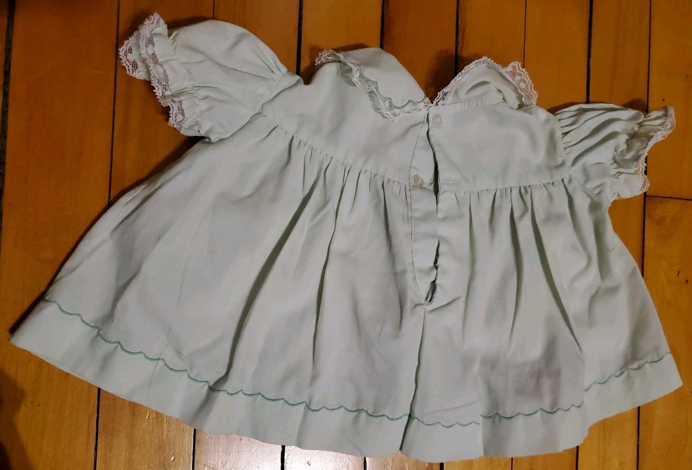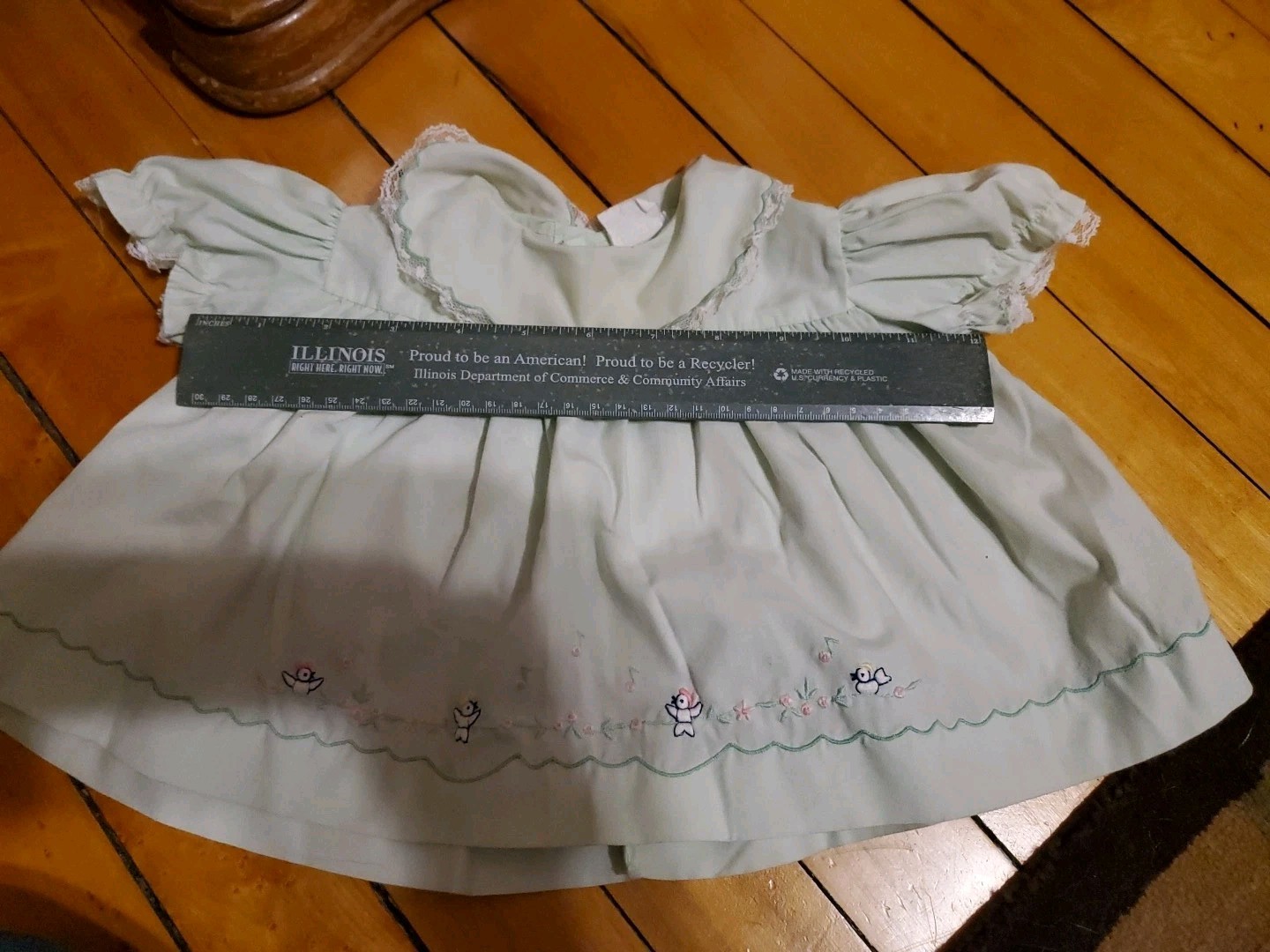 как выглядит Nannette Vintage Baby Dress Green Embroidered Birds W Matching Rubber Pants фото