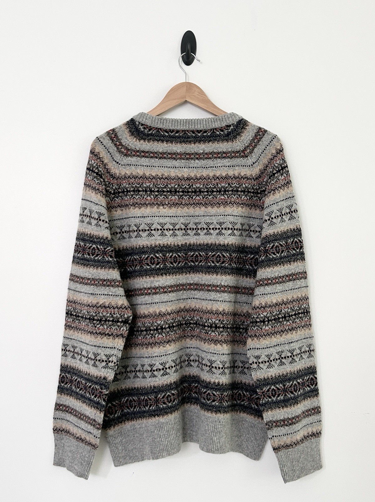J. Crew Men's XL Gray Multi Fair Isle Wool Blend Crew Neck Pullover Sweater NWT