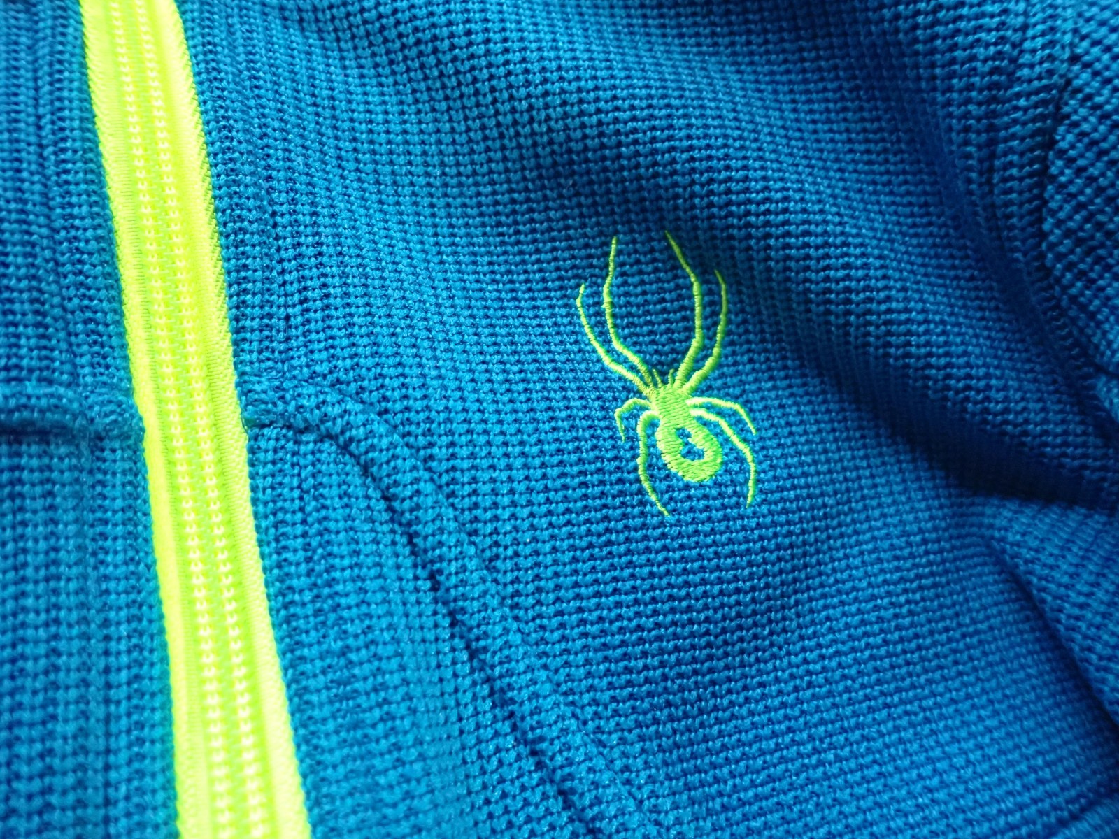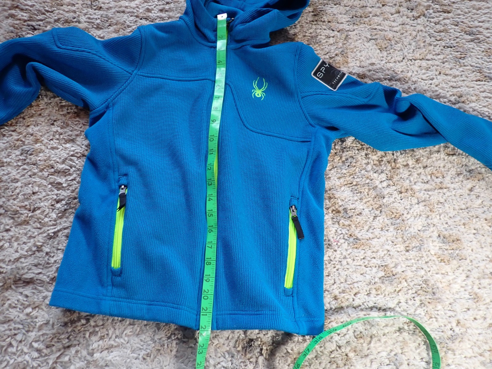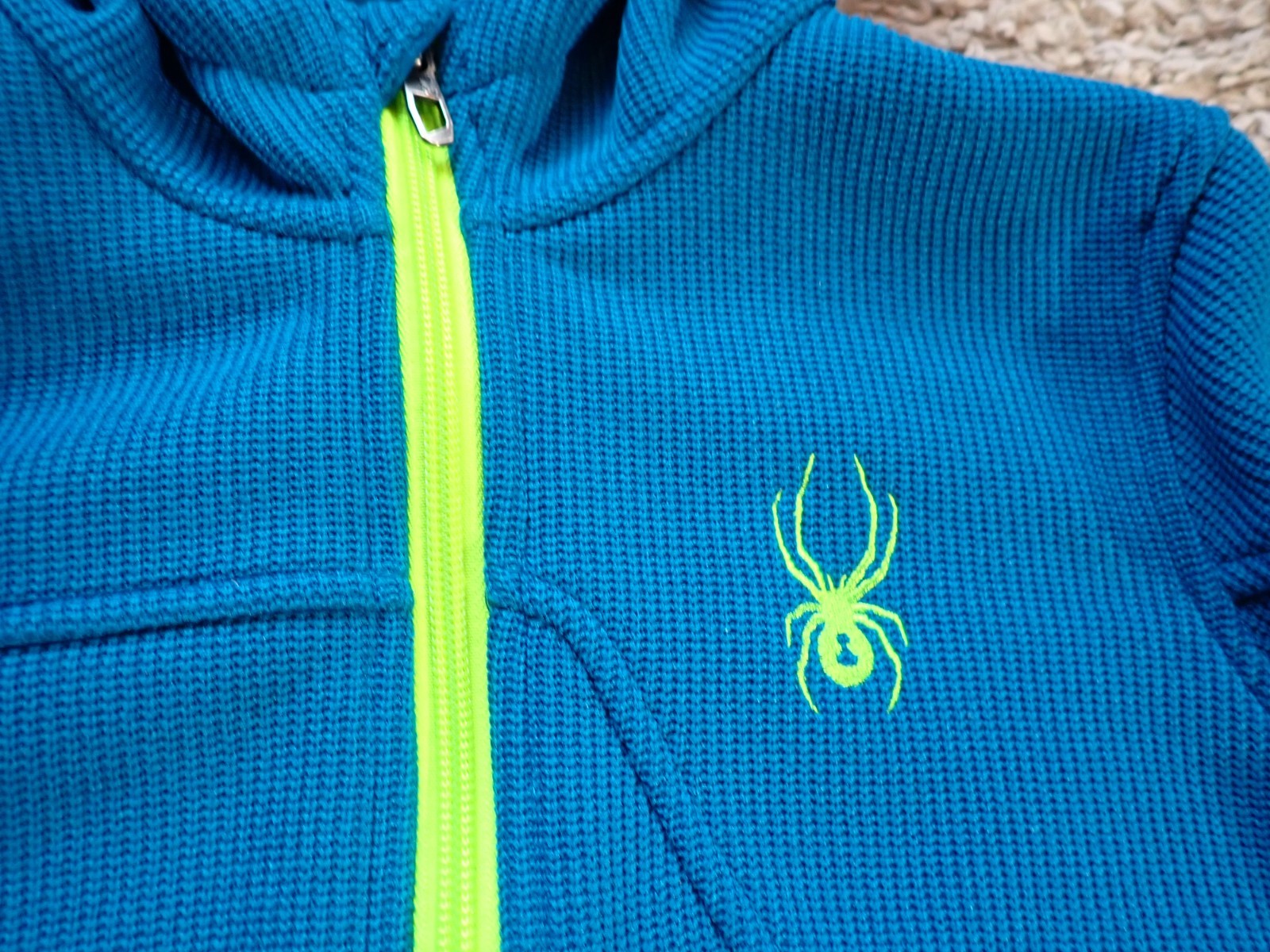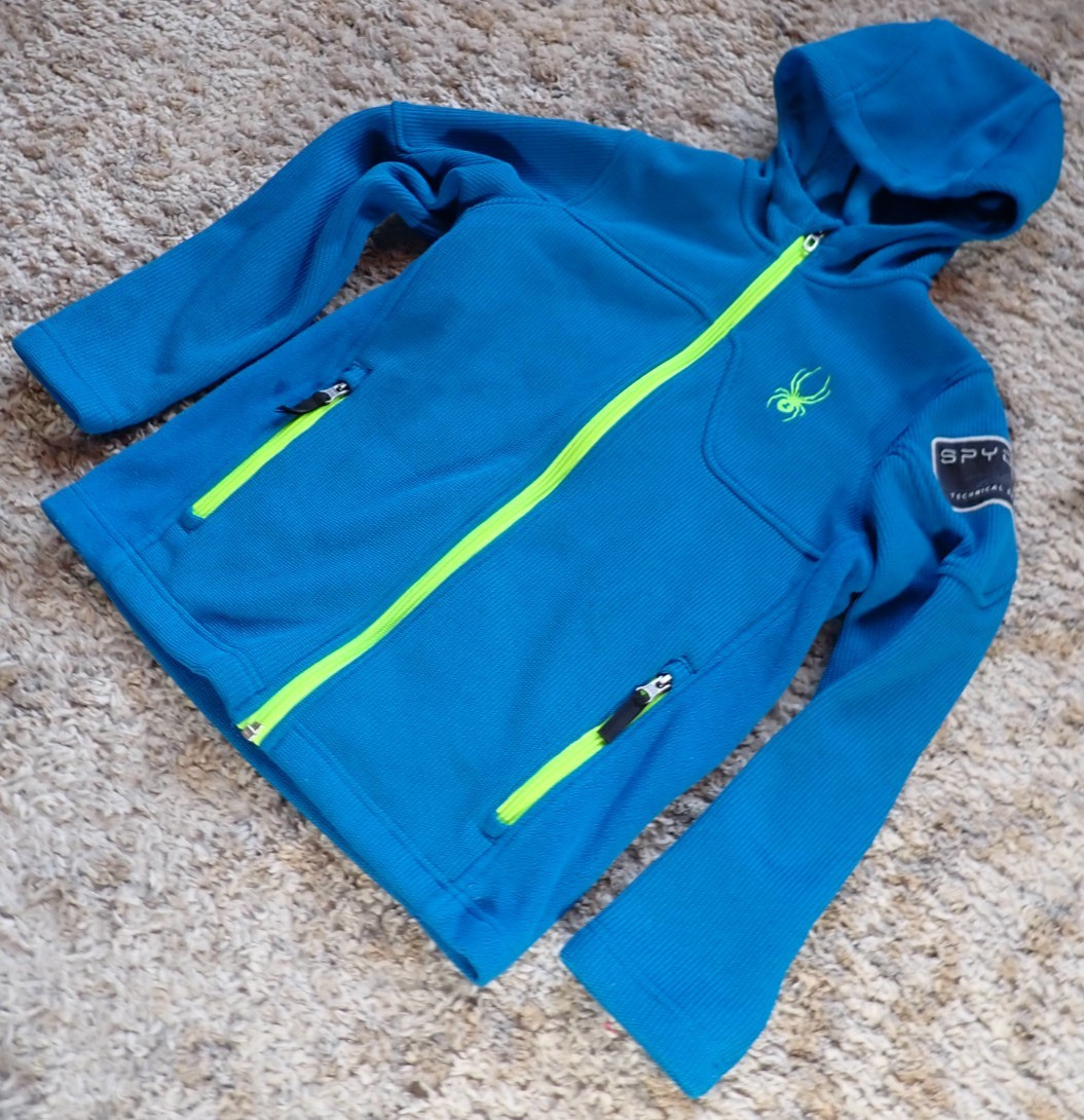 как выглядит SPYDER HOODED TECHNICAL SKIWEAR KNIT JACKET in Youth size Medium 10/12 Blue/Lime фото