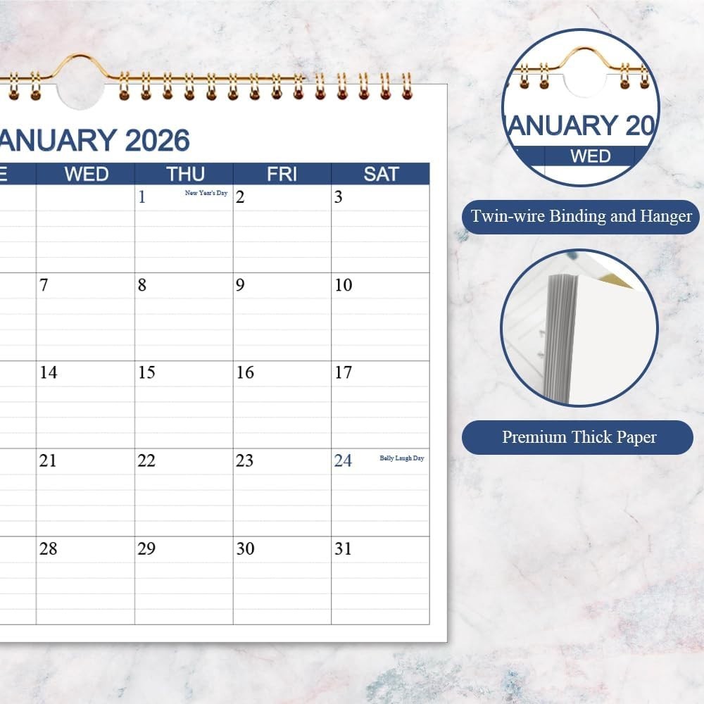 • Wall Calendar 2026 Blue 8.5 x 11 Inches Thick Paper for Home Office Planning