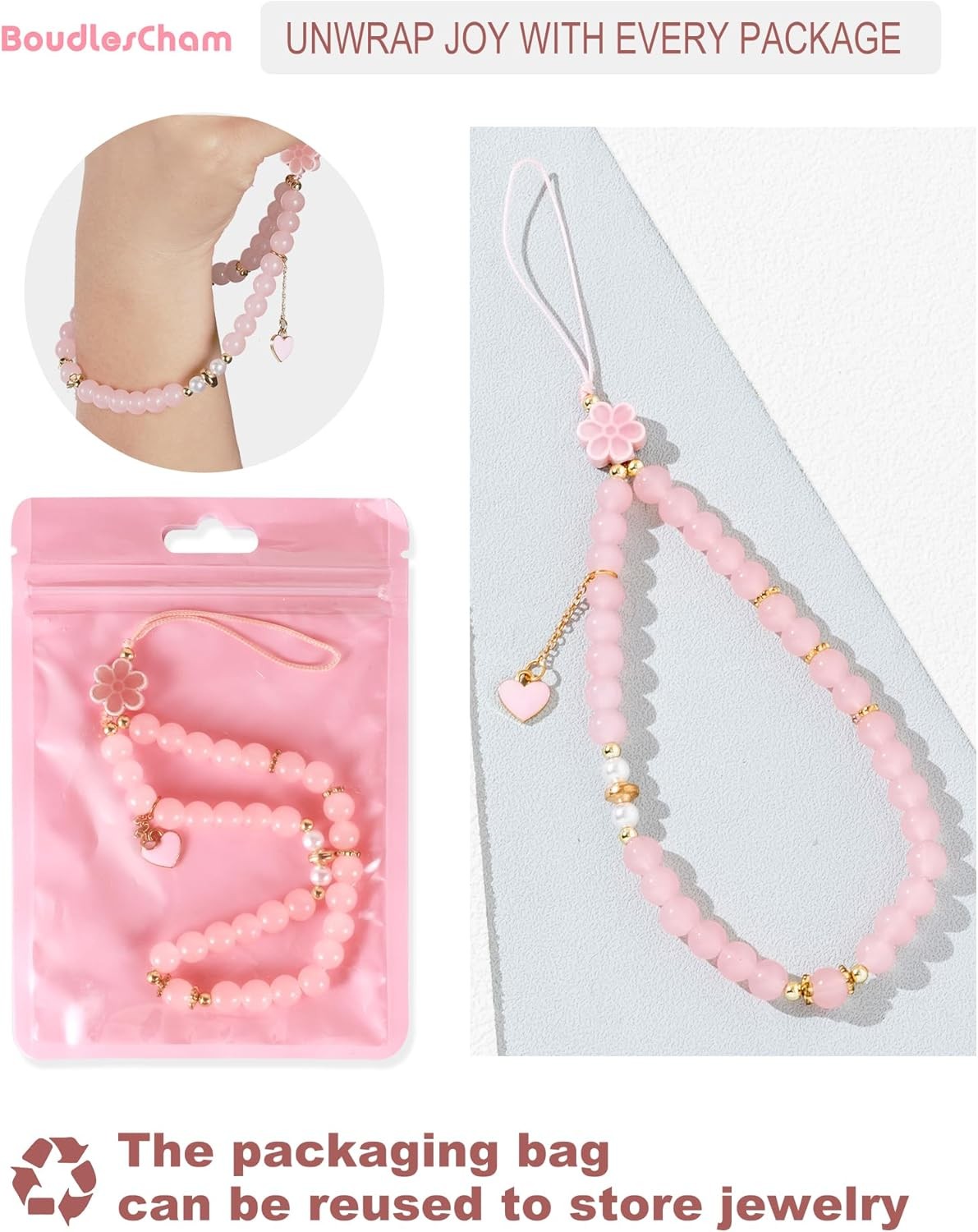 как выглядит Phone Charm  Cute Pink Pearl Beaded Wrist Strap for Women, Aesthetic фото