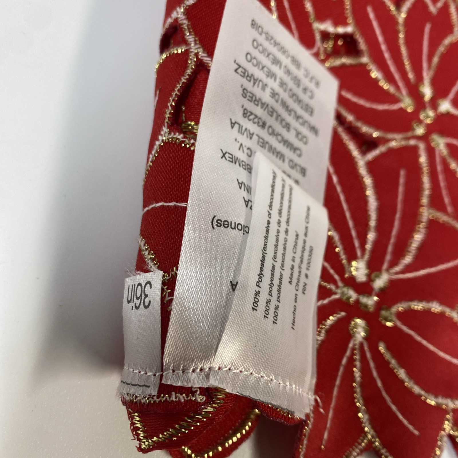 Red gold table runner christmas cut out holiday poinsettia floral 36x15