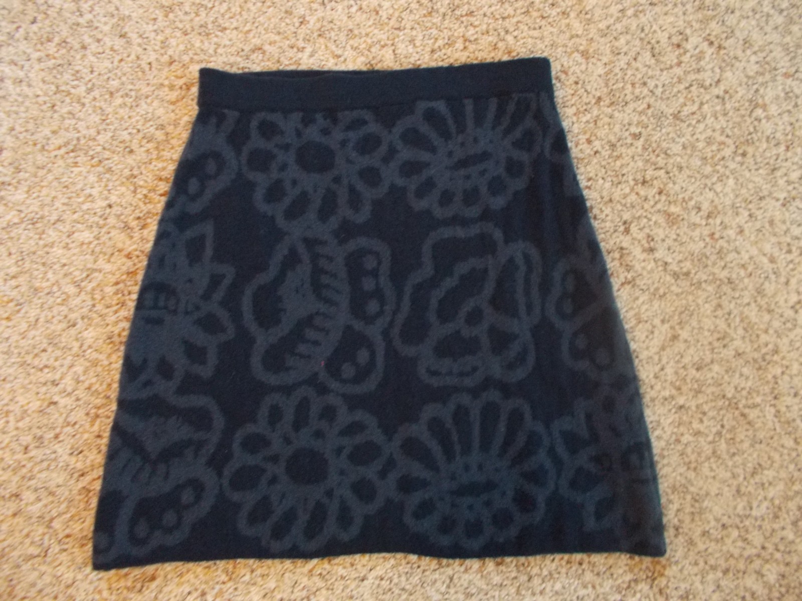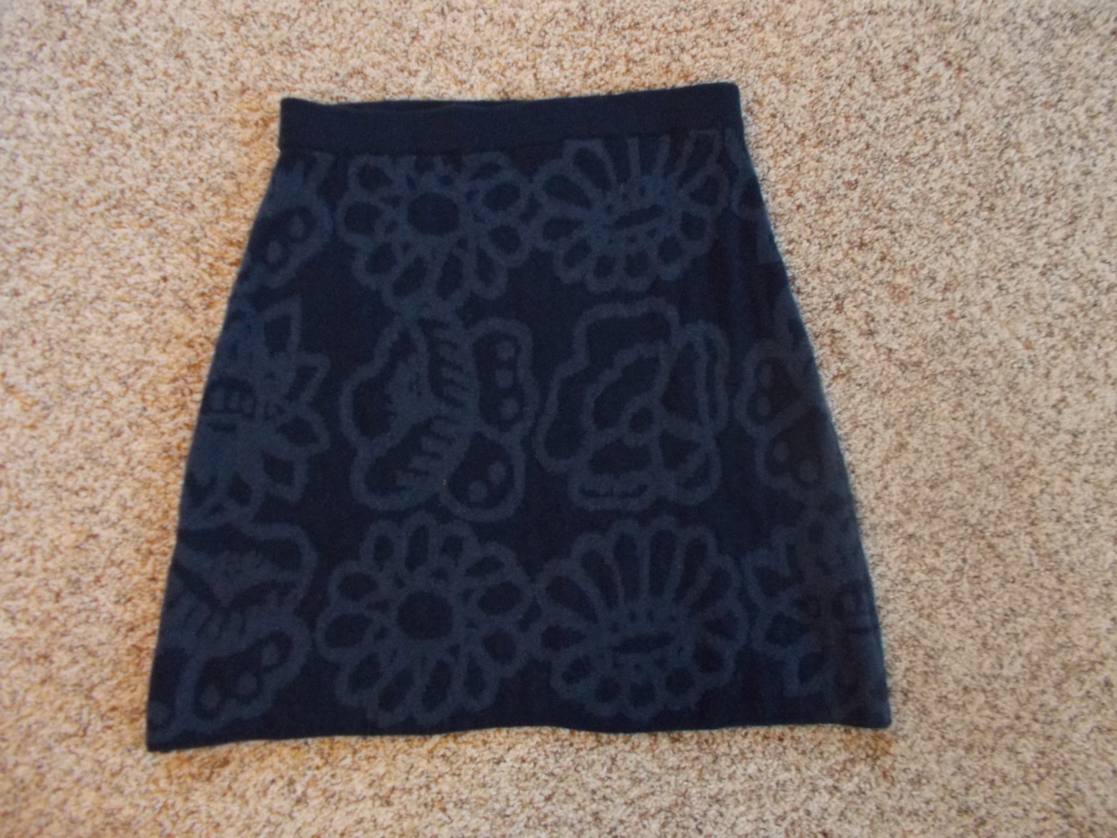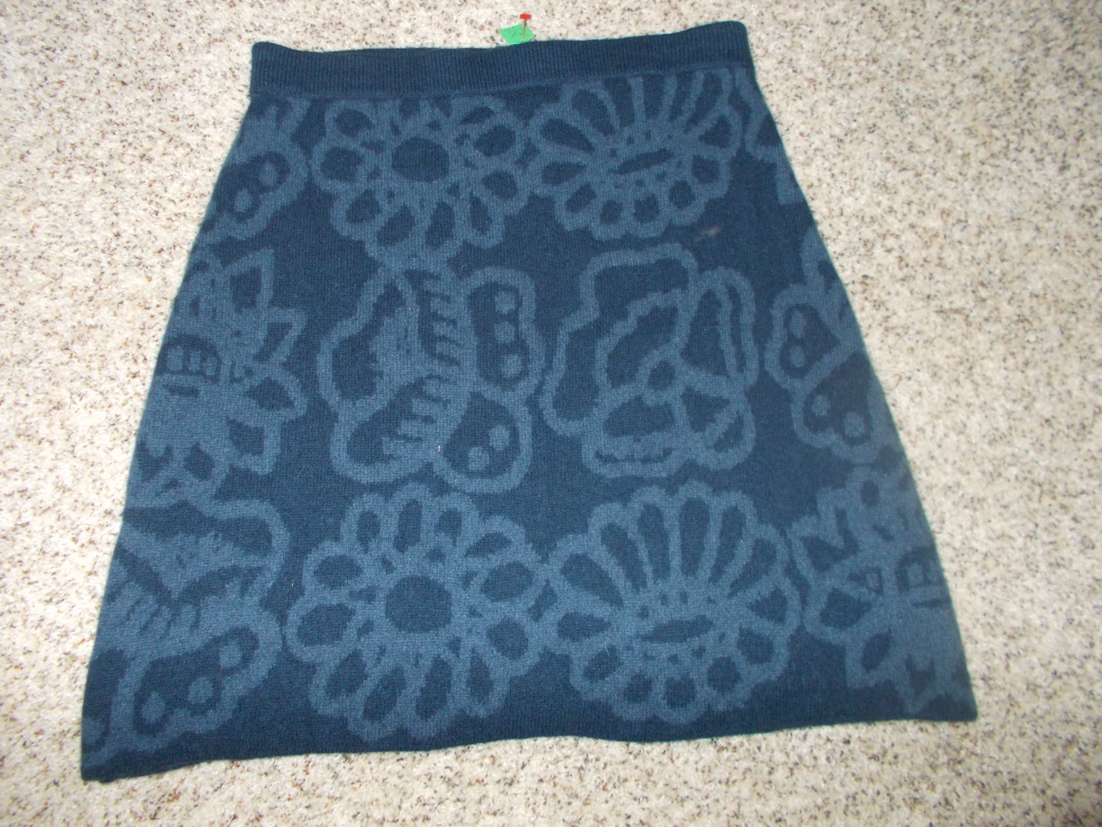 Marimekko 100 Wool Knee Skirt Knit sz M L Uniqlo Blue Flowers
