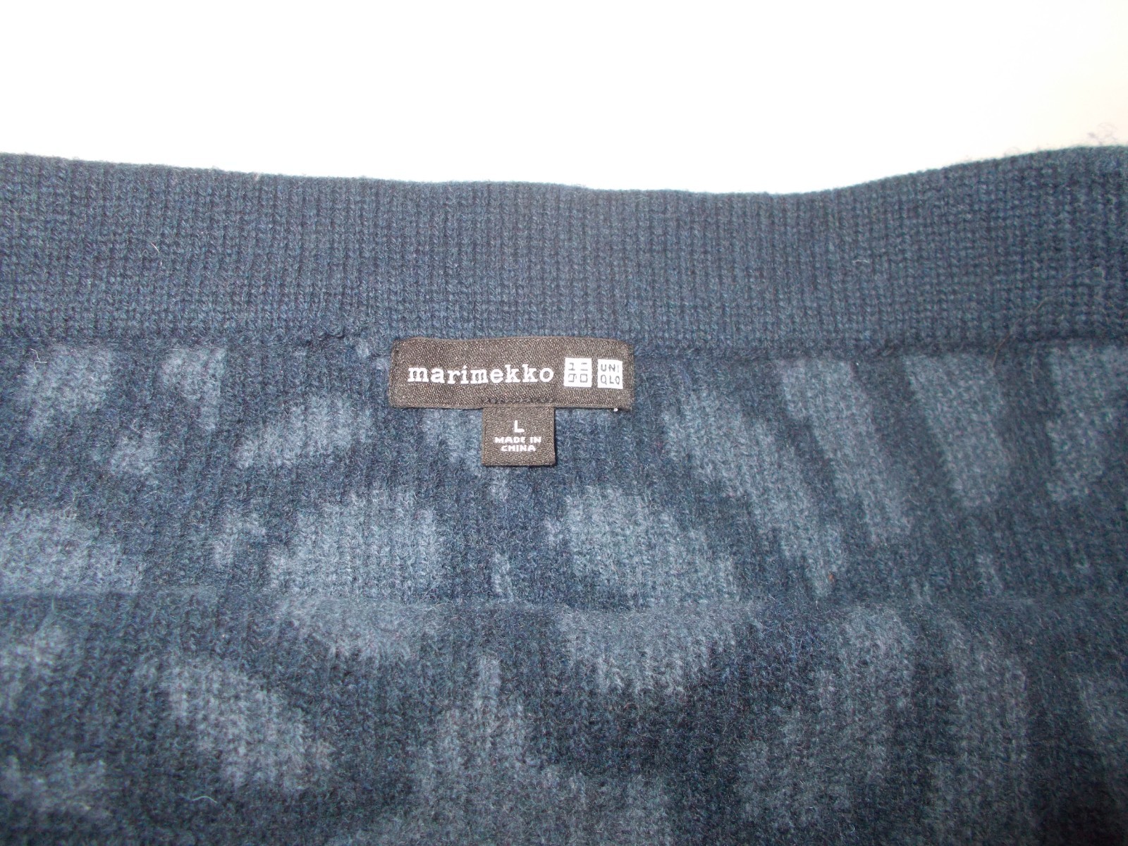 как выглядит Marimekko 100 Wool Knee Skirt Knit sz M L Uniqlo Blue Flowers фото