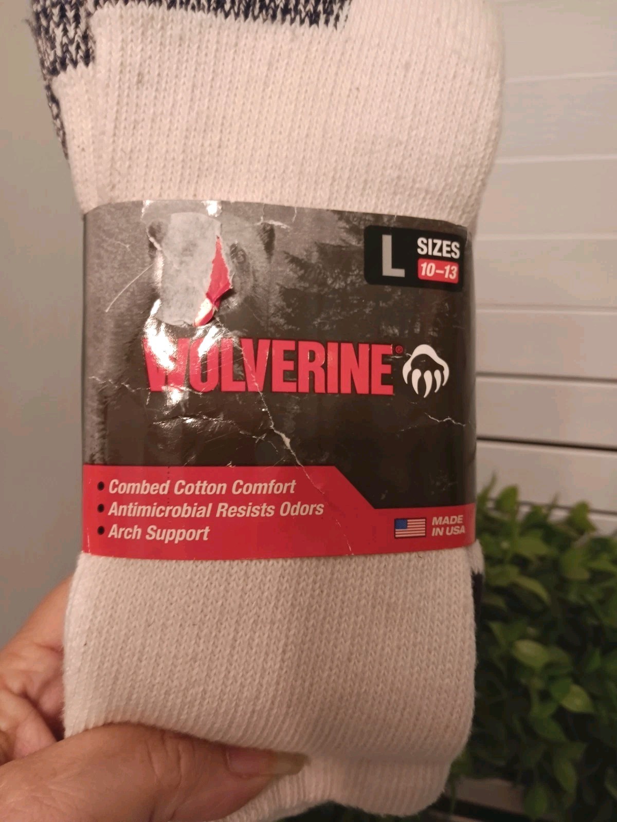 как выглядит Wolverine Large Socks 9-13 Cream Black Gray Odor Control Arch Support 2 Pairs фото