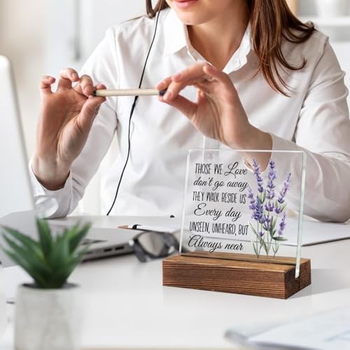 Those We Love Don't Go Away Acrylic Sign, Sympathy Bereavement White-purple