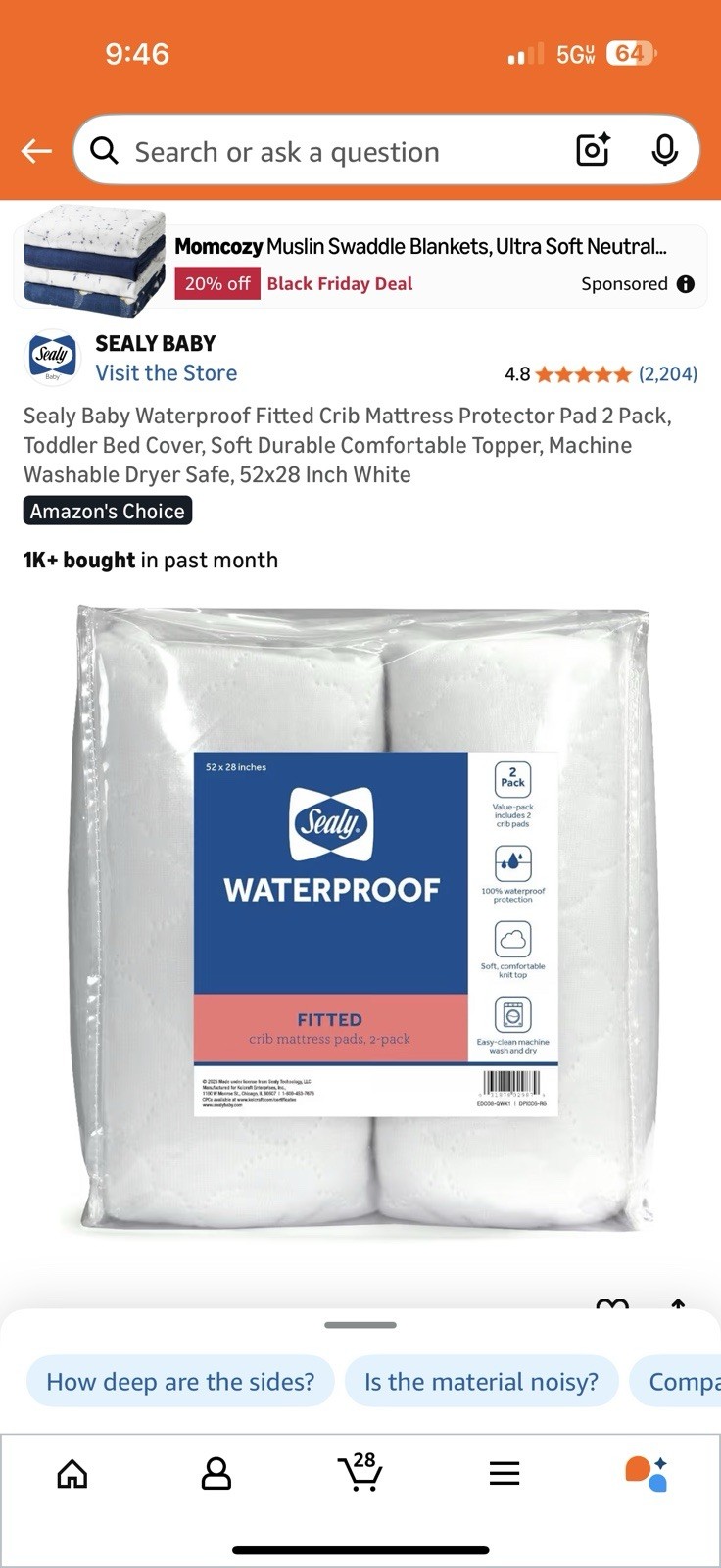 как выглядит Sealy ED008-QWX3 2 Pack Waterproof Crib Mattress Pad 52x28 фото