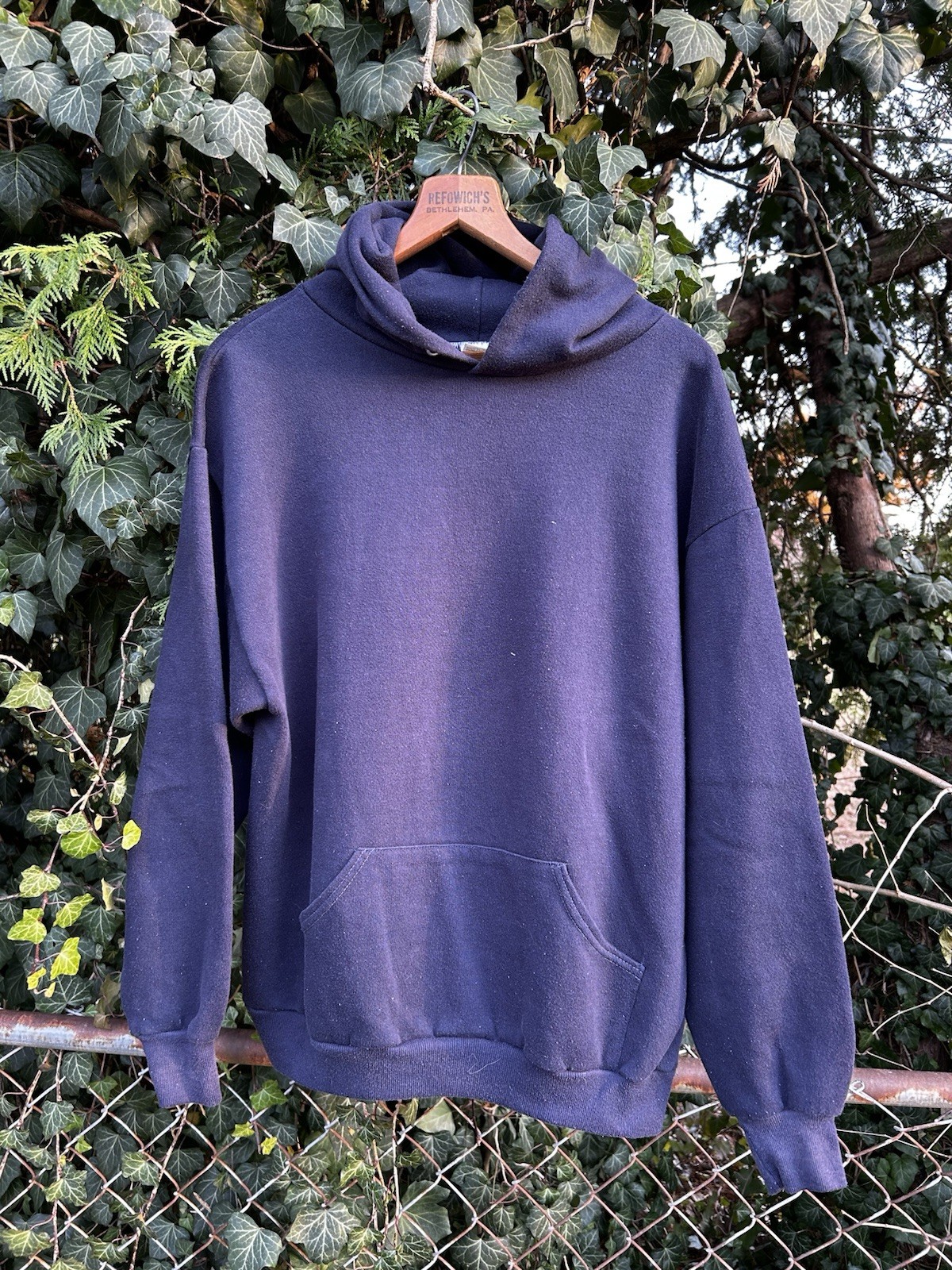 как выглядит VTG 1970s SPORTSWEAR Dark Navy BLANK Pullover Hoodie Sweatshirt L 80s usa фото