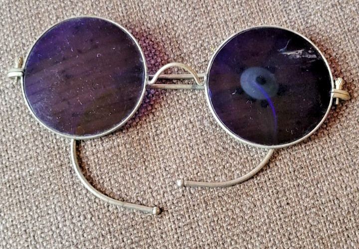 Antique Cobalt Blue Wire Rim Spectacles Glasses 19th Welding Safety