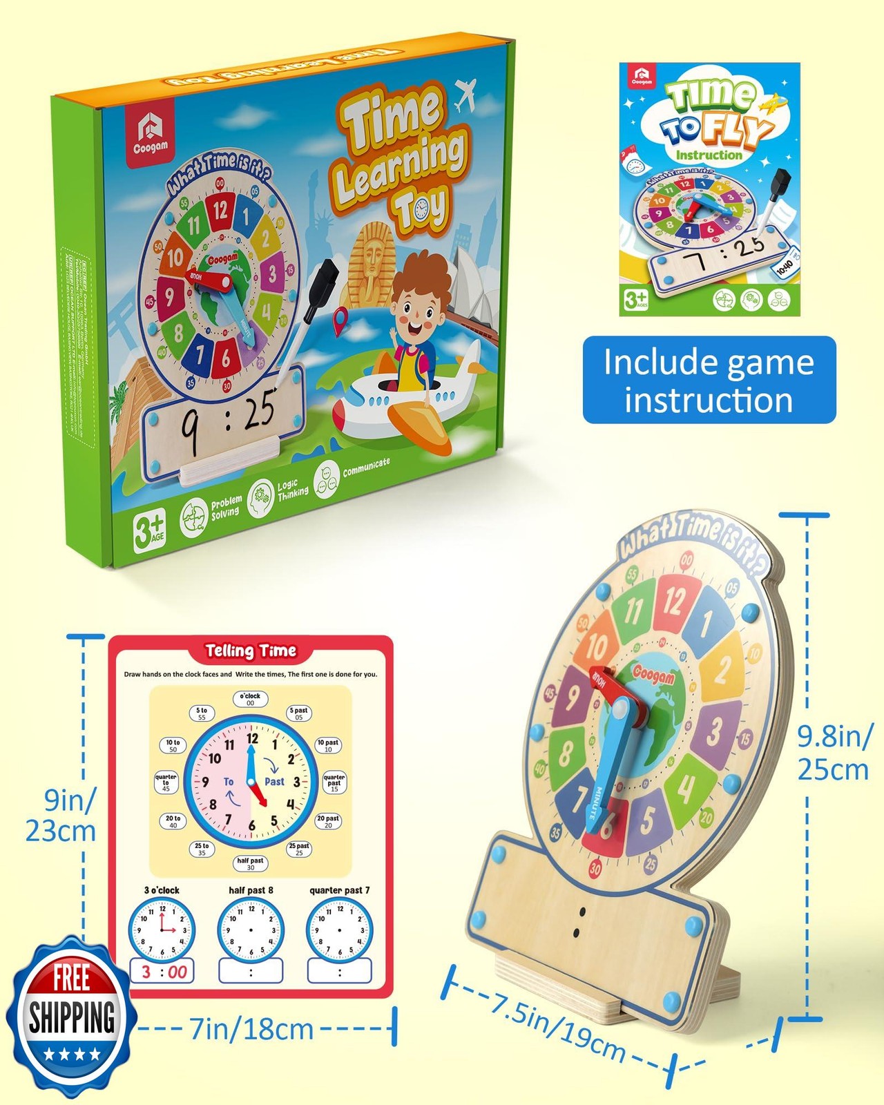 Coogam Wooden Clock Teaching Time Toy, Analog Digital Clock with
