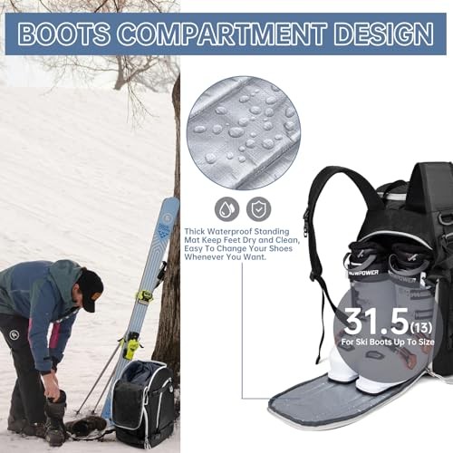 Ski Boot Bag, 50L Ski Boot Travel Backpack for Skis, Snowboard Black