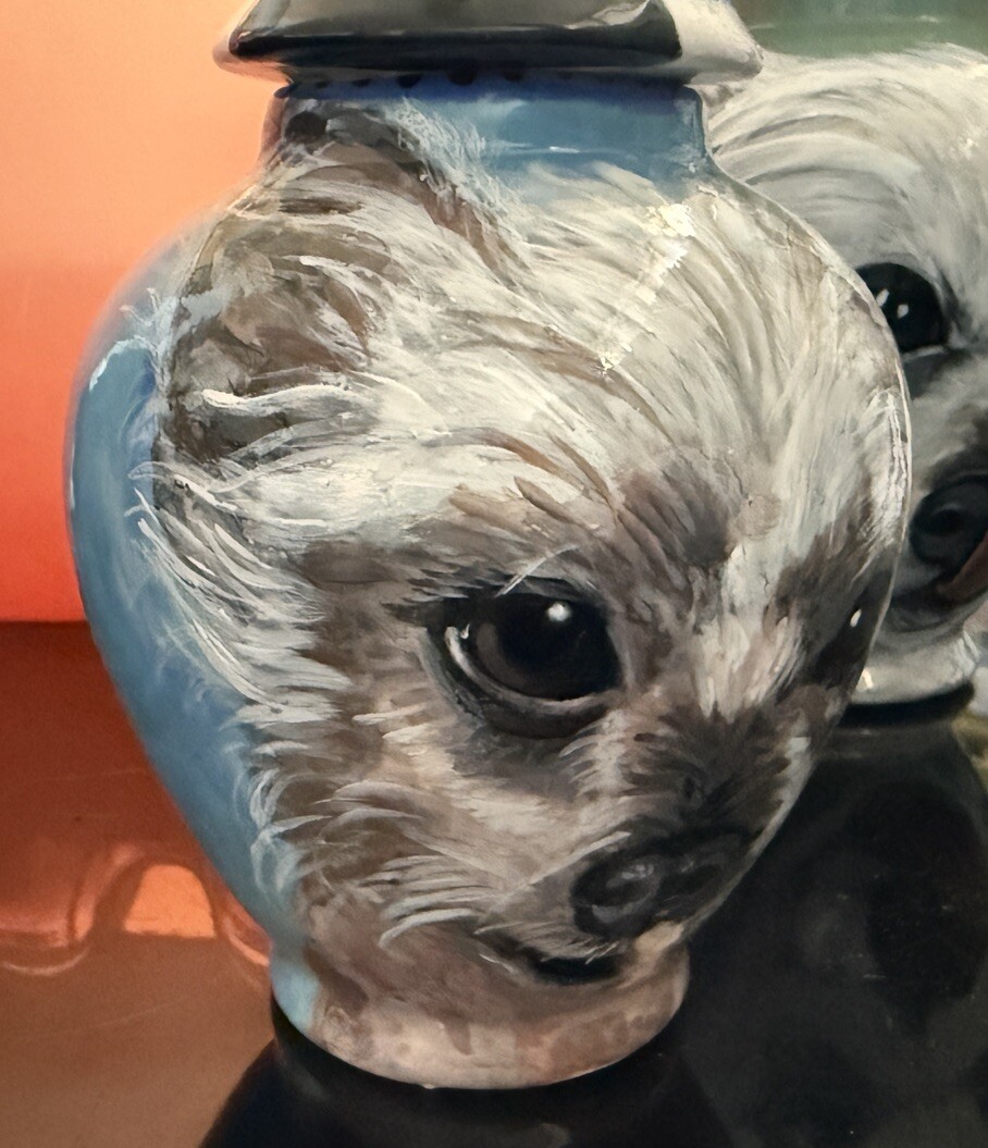 Custom Portrait Small MEMORIAL Pet URN Chinese Crested dog cremation ASHES art