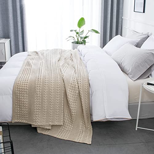 100 Cotton Waffle Weave Blanket Size - Luxury Decorative King Light Khaki