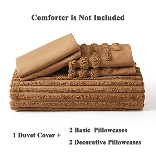 Size Duvet Cover, 5 Pieces Textured Duvet Cover Sets, Soft King Pumpkin Brown