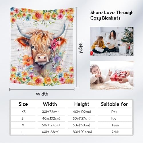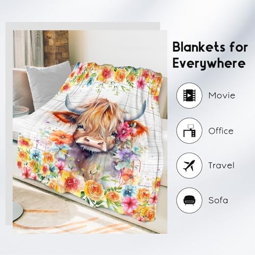 Highland Cow Blanket, Cozy Soft Throw Gifts for Girls, Cute 40x50 Style