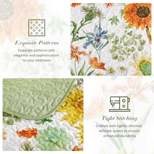Floral King Quilt Bedding Set Sunflower Colorful King 106x90 Sage Green