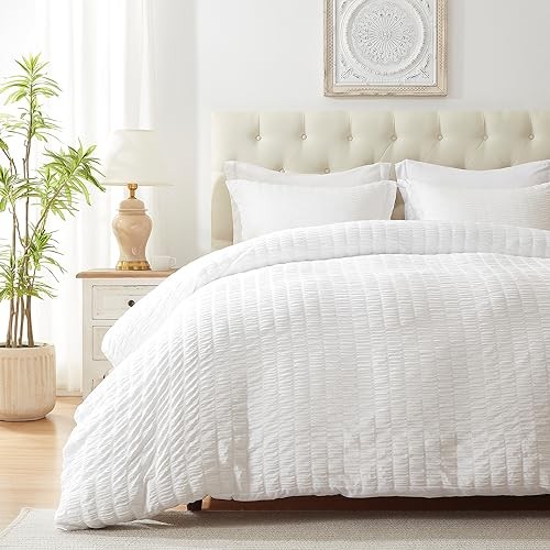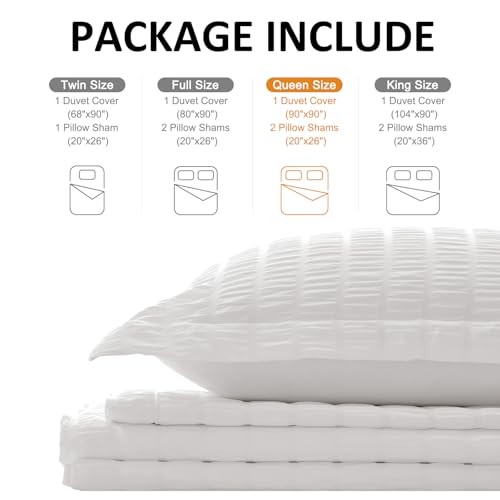 Duvet Cover Queen Size, Soft 3-Piece Seersucker Queen Queen 90x90 White