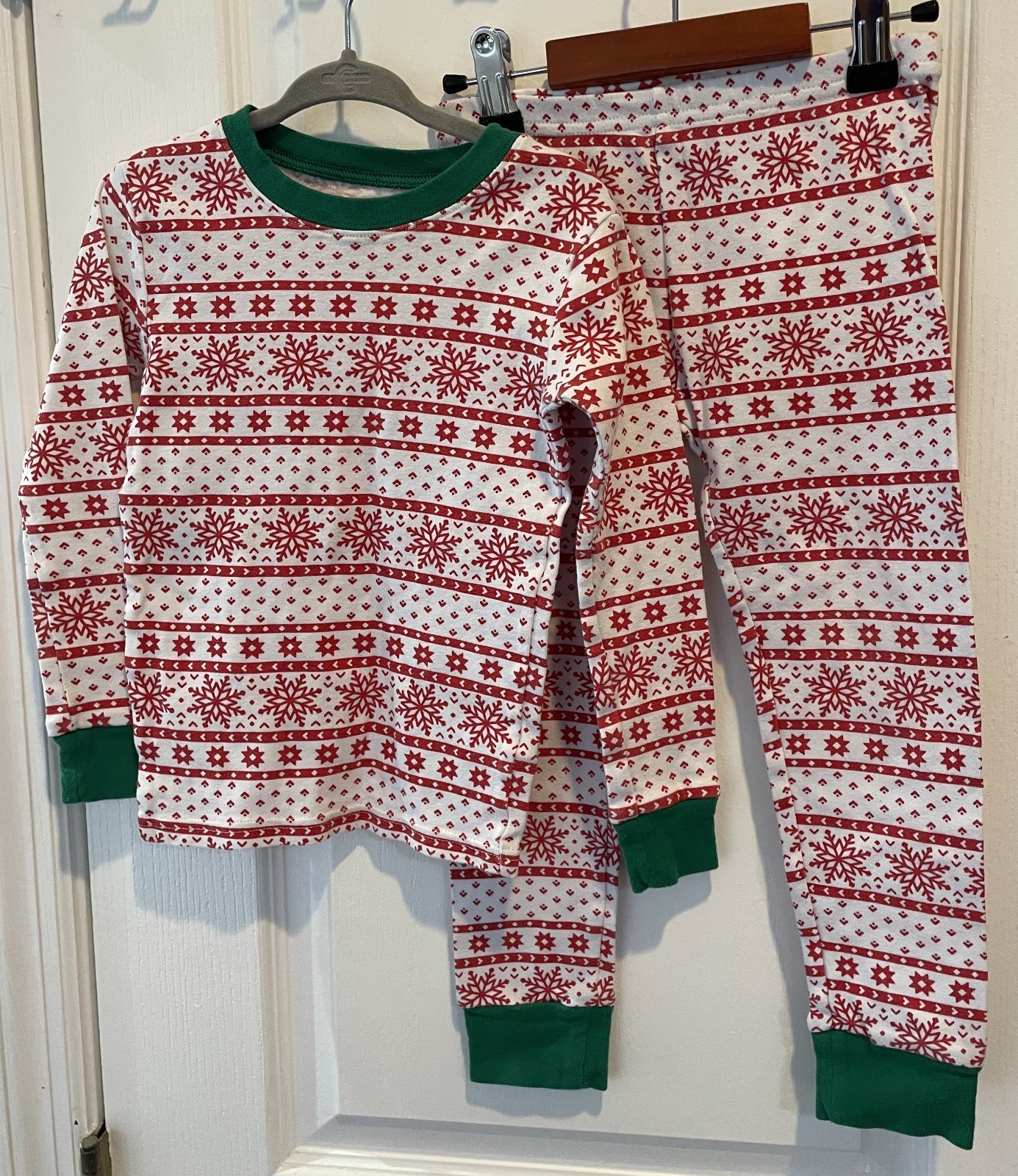 как выглядит Lot Of 3 Size 4/5 Boys Unisex Holiday Pajama Set Long Sleeve Top Carter