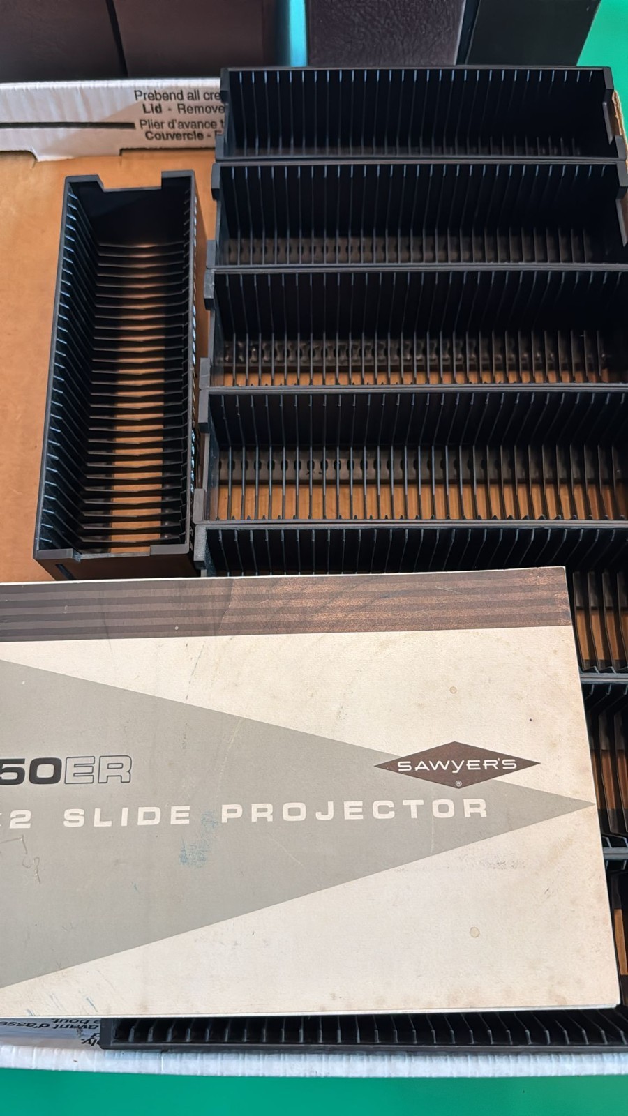 Sawyer s 550ER slide projector w remote 4 rotary trays untested