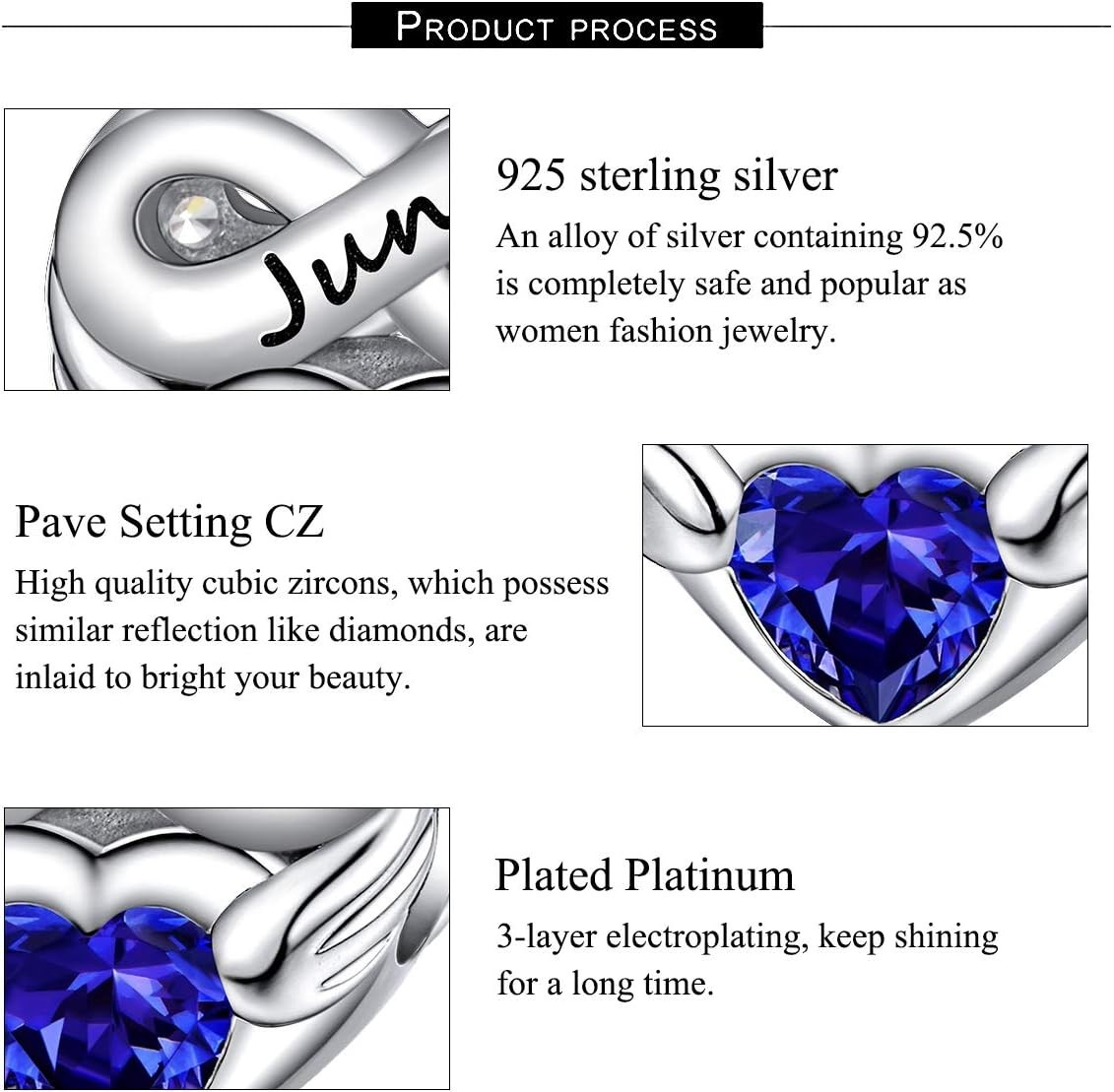 Elegant 925 Sterling Silver Infinity Birthstone Charm for Bracelets Necklaces