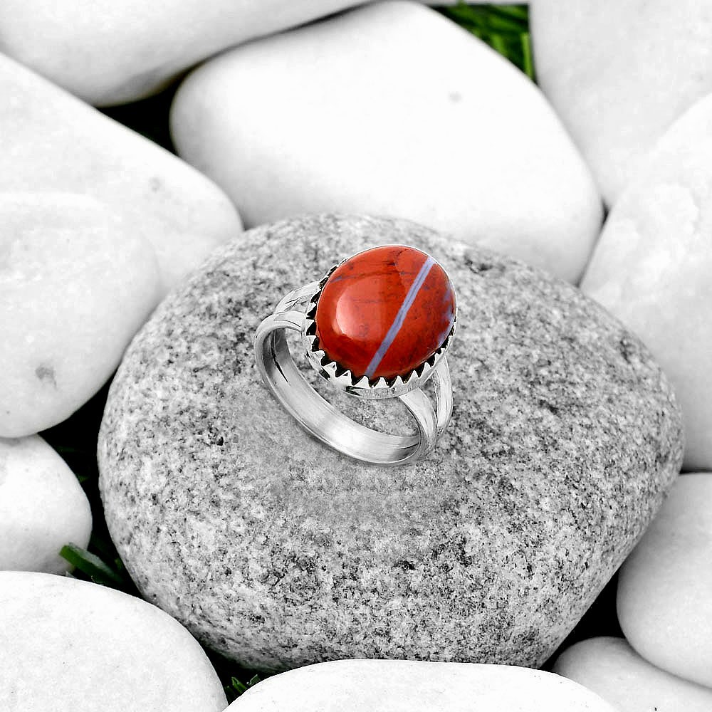 Natural Red Moss Agate 925 Sterling Silver Ring s.7 Jewelry R-1210