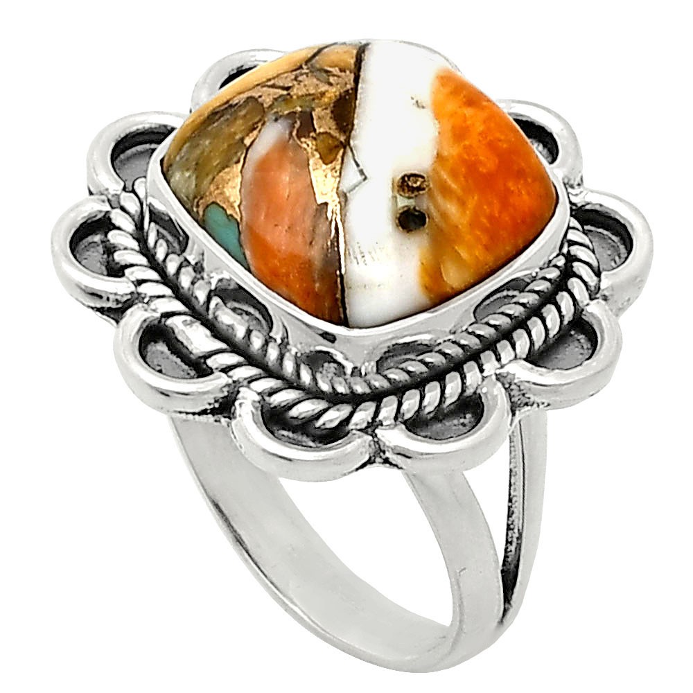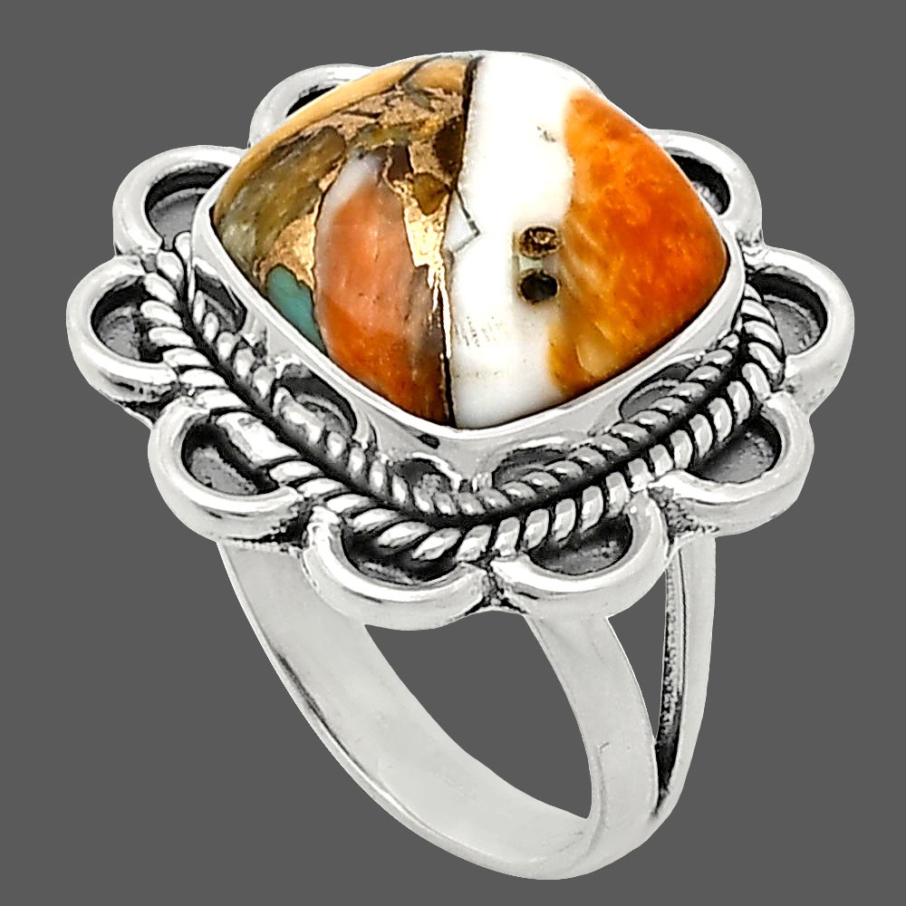 Premium Spiny Oyster Turquoise Arizona 925 Sterling Silver Ring Size 7 R-1221