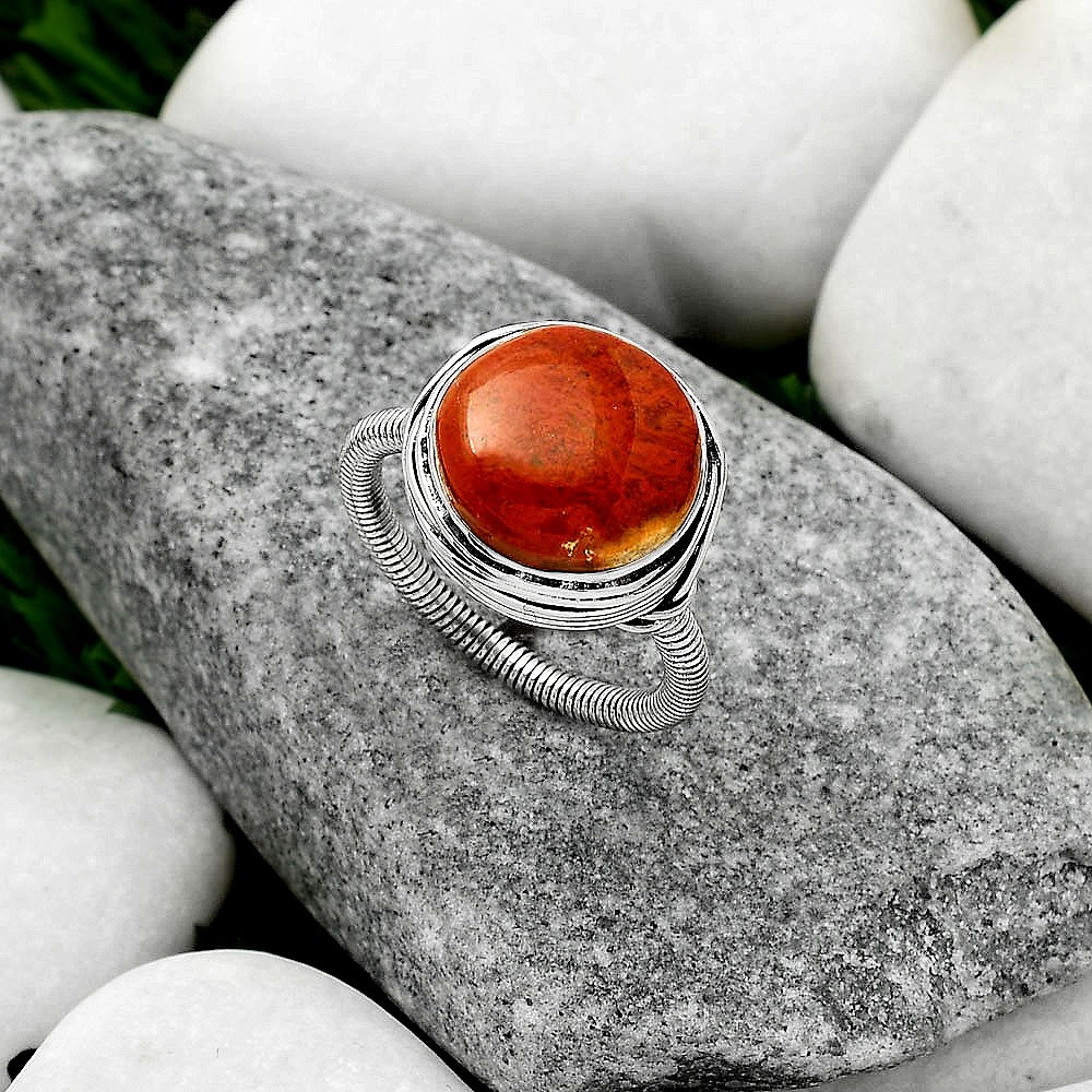 Natural Red Moss Agate 925 Sterling Silver Ring s.8 Jewelry R-1415