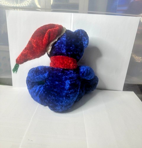 Christmas Plush Blue Soft Bear with Carf and Hat 10 Stocking Stuffer