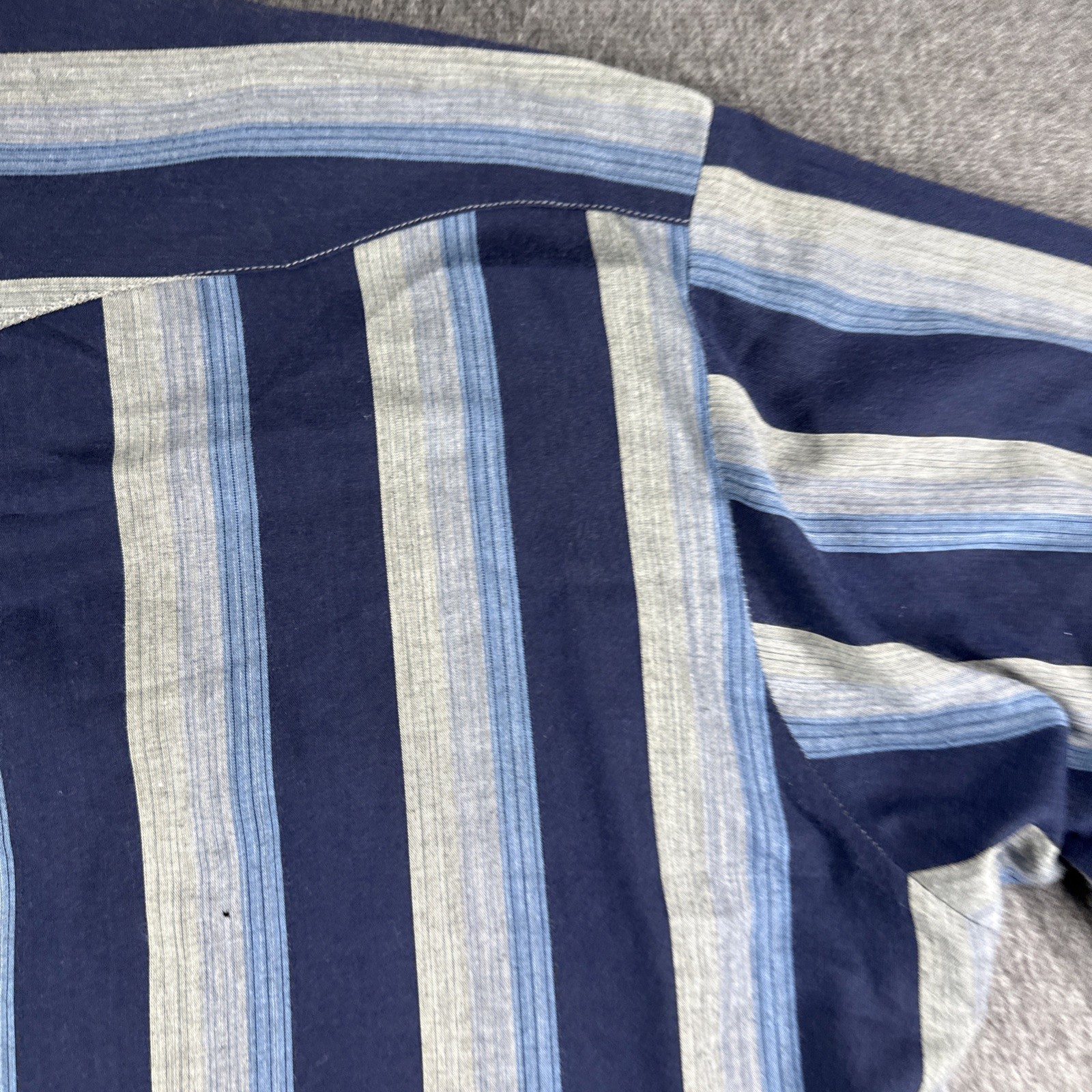 как выглядит VTG Panhandle Slim Western Shirt Mens 17.5-35 Gray Blue Stripe Pearl Snap 90s фото