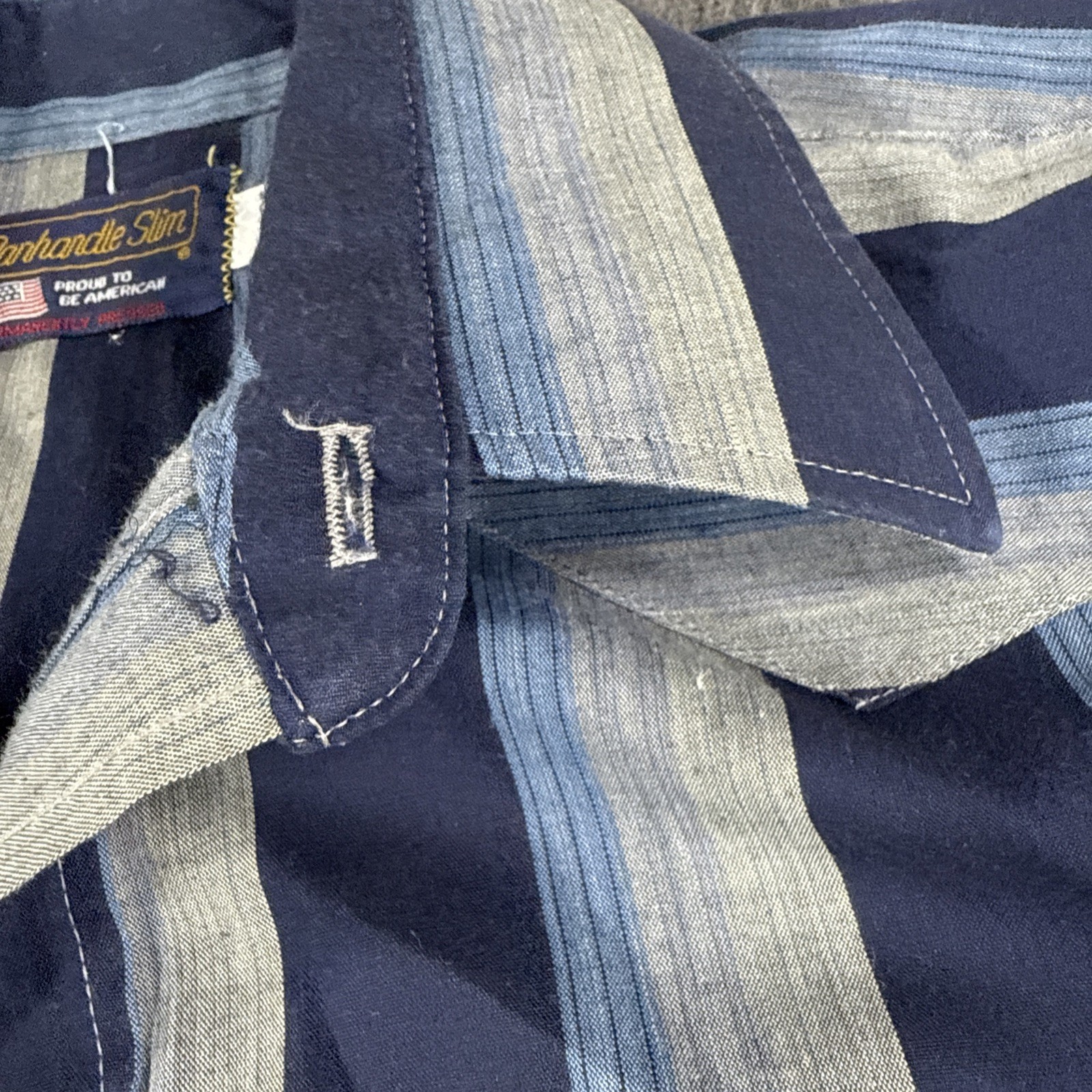 VTG Panhandle Slim Western Shirt Mens 17.5-35 Gray Blue Stripe Pearl Snap 90s