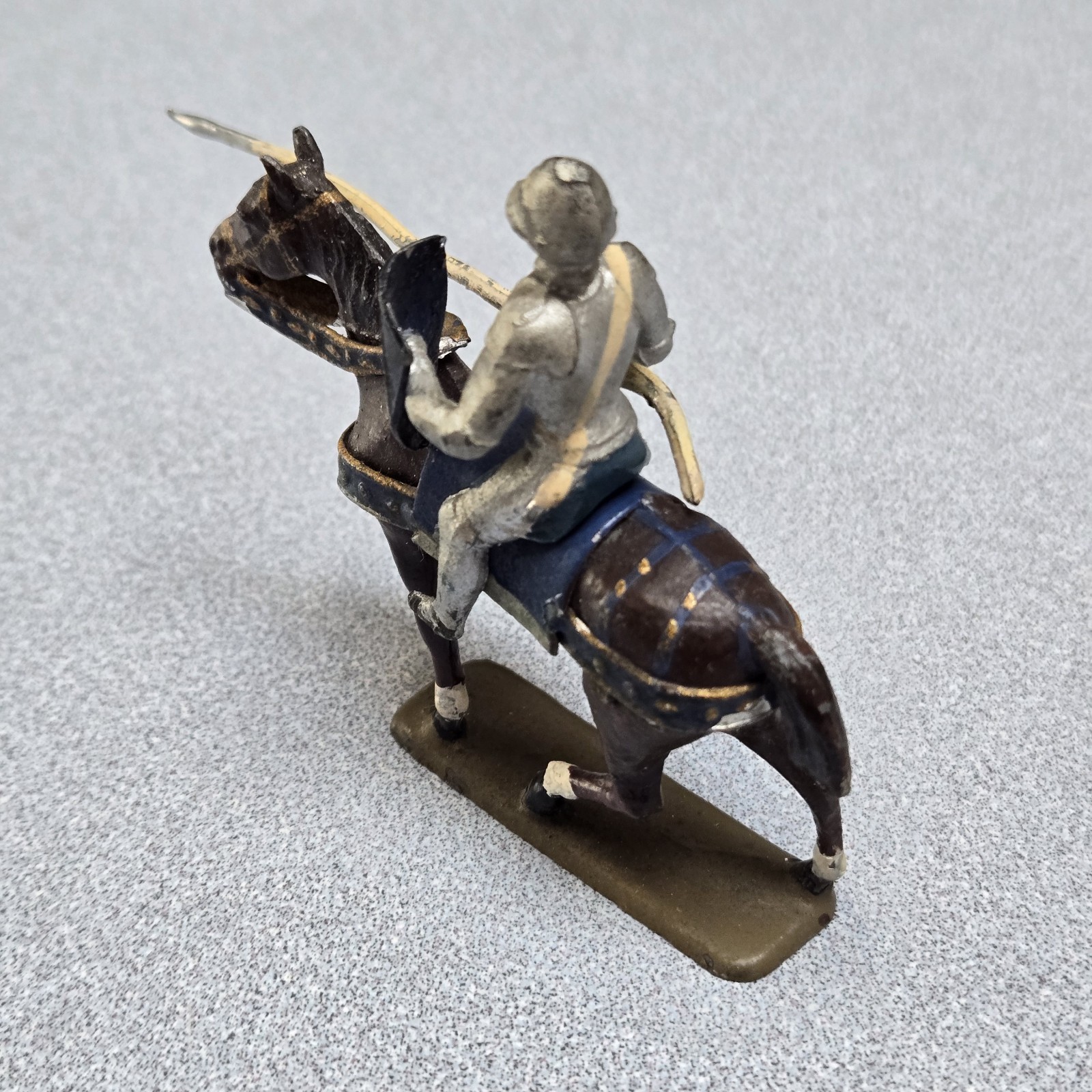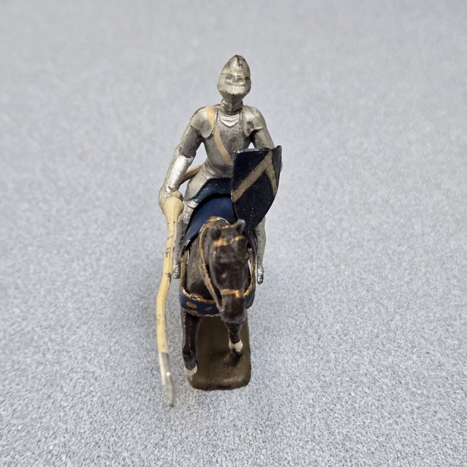 как выглядит Vintage Cast Metal Tin Knight On Horseback With Lance Jousting фото
