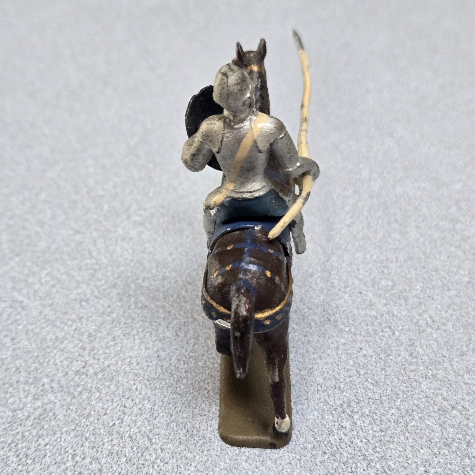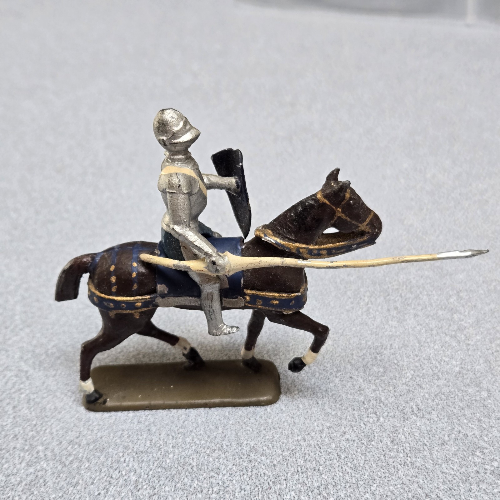 Vintage Cast Metal Tin Knight On Horseback With Lance Jousting