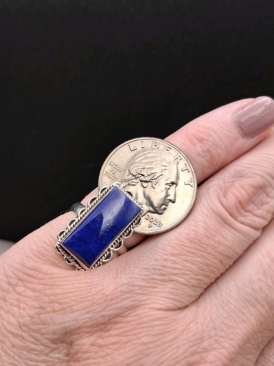 как выглядит Sterling Silver, Lapis Lazuli Ring, Size 5.75, Boho, Southwestern фото