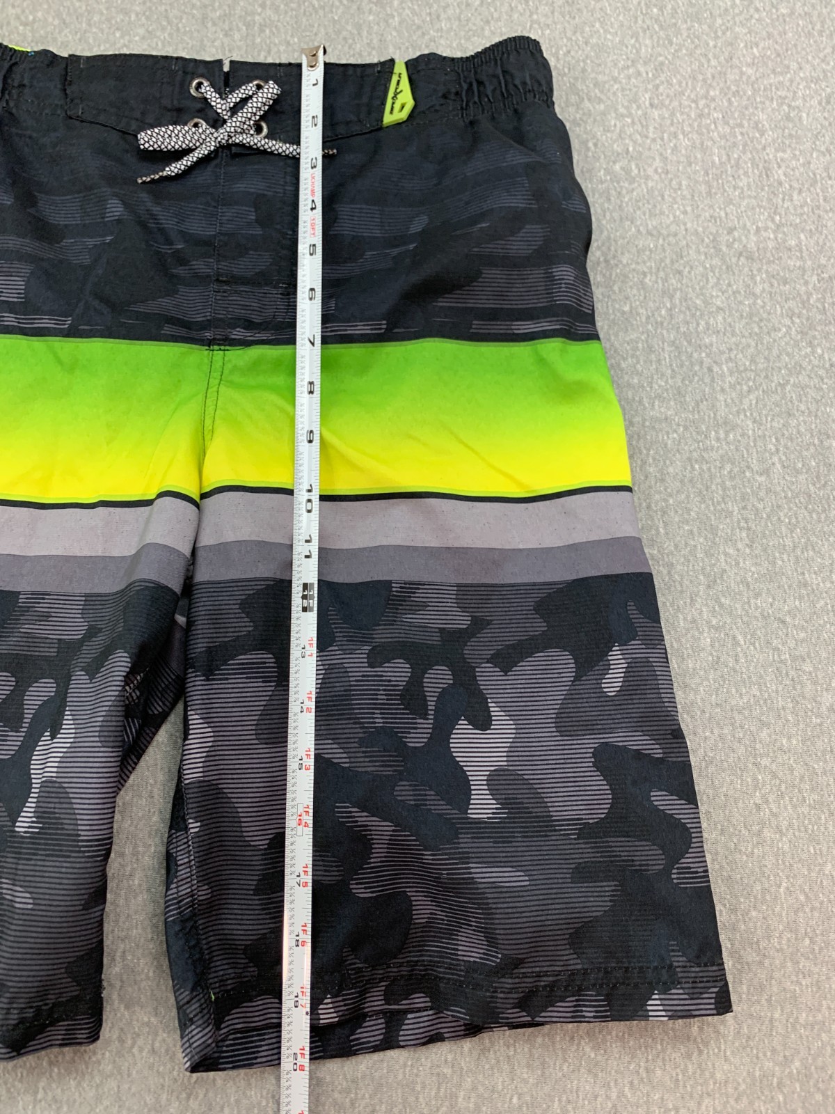Zero Xposure Swim Trunks Boys L 14 Black Camo Green Stripe Built in Briefs Cool