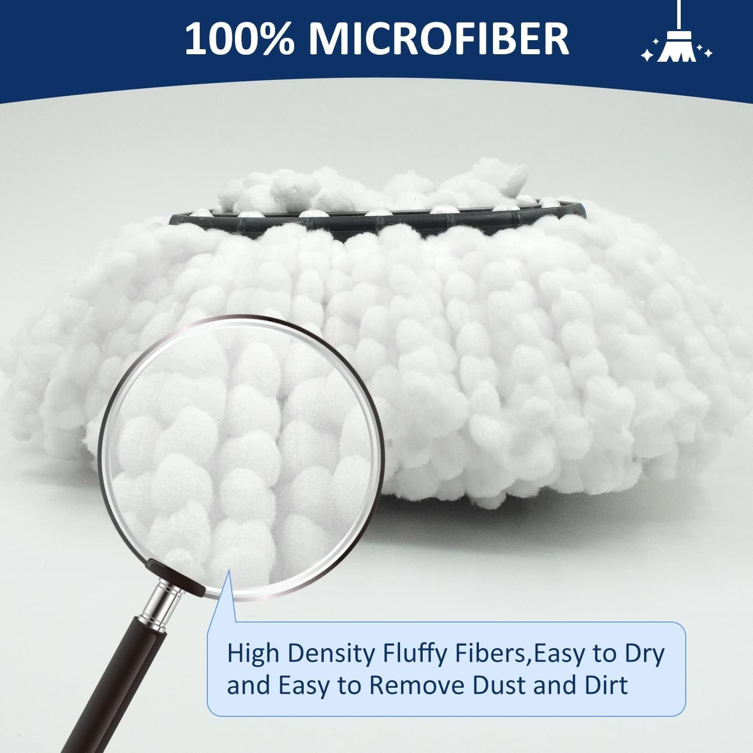 Цвет: 1 Sets Mop Handle + 2 White Heads + 1 Base