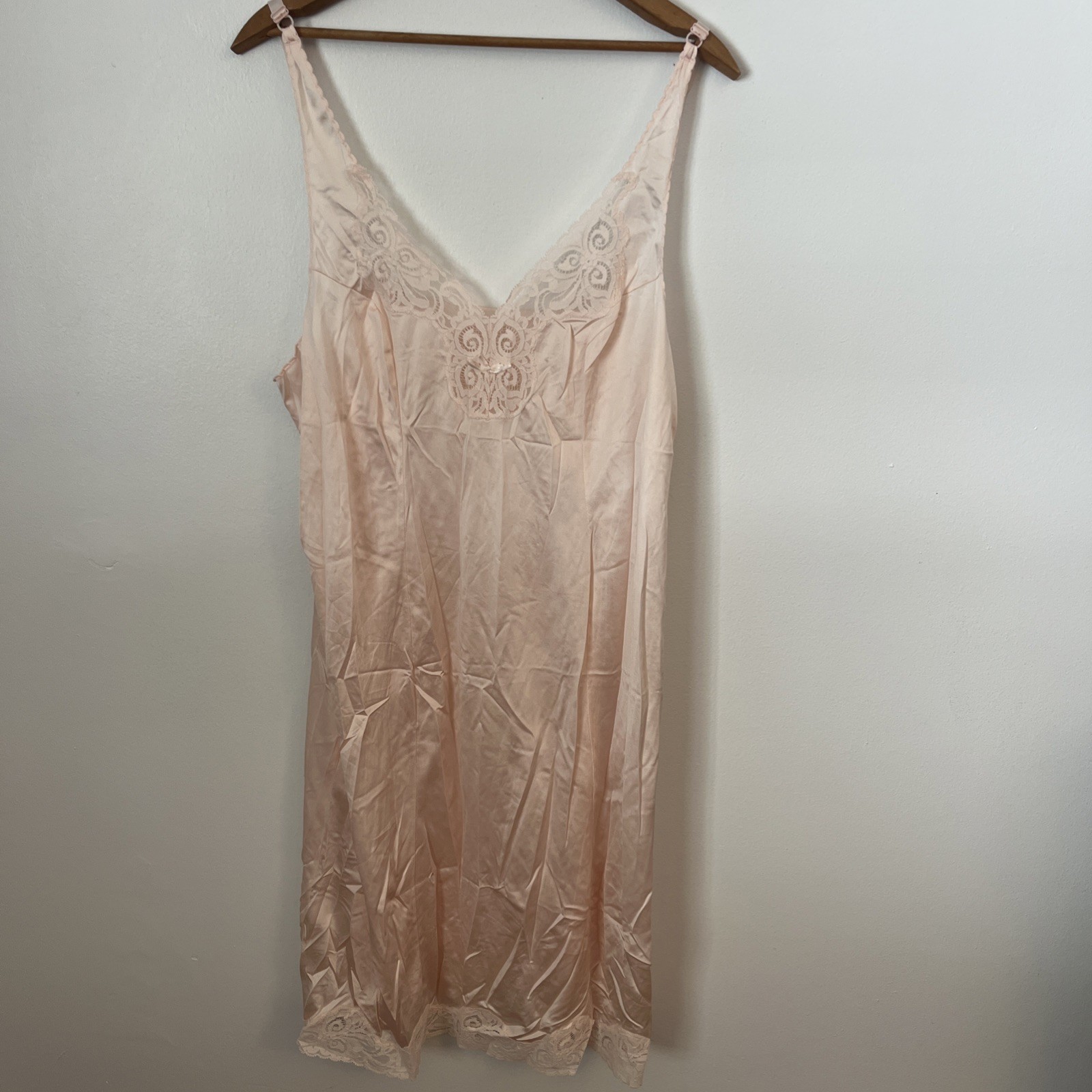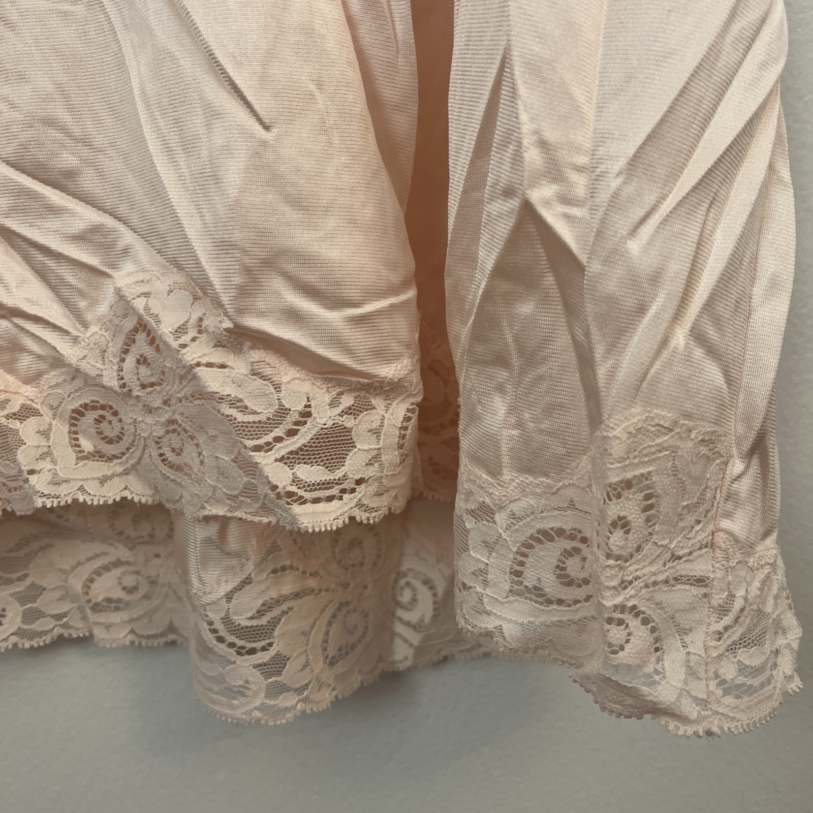 Vintage Lace Mid Length Size 42 Rose Pink Light Made USA Nightie Slip V Neck Bow