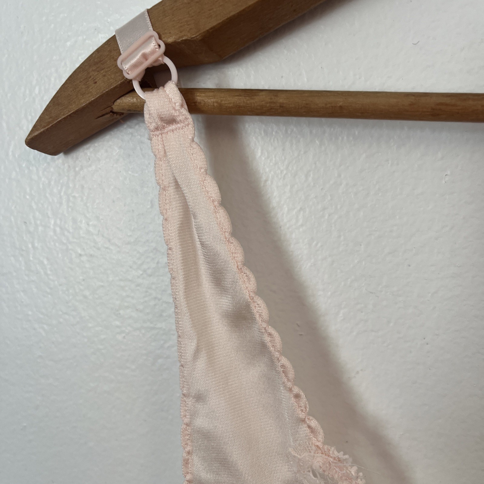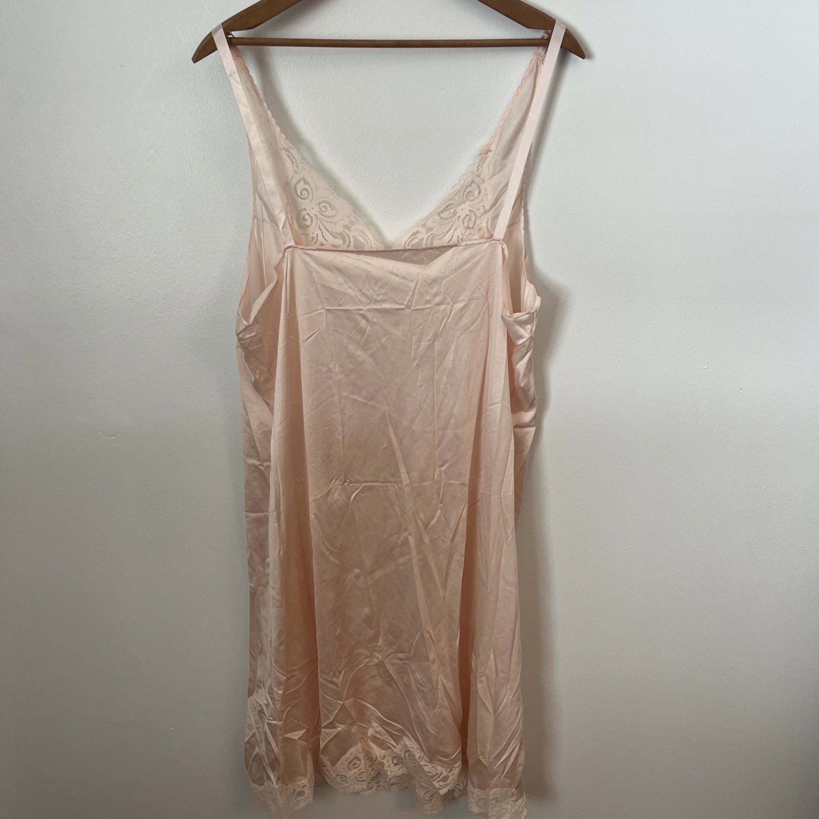 как выглядит Vintage Lace Mid Length Size 42 Rose Pink Light Made USA Nightie Slip V Neck Bow фото