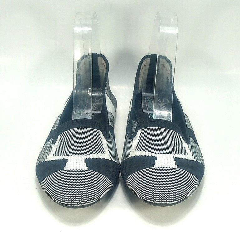 Skechers Cleo Sherlock Womens 8 Black And White Engineered Knit Flats Shoes