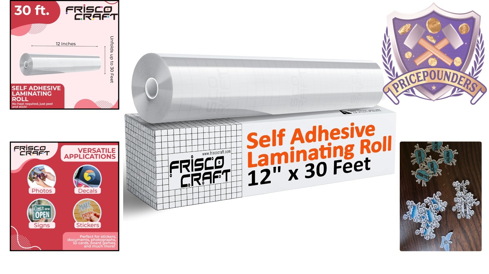 Self Adhesive Laminating Roll - Clear 12 x 30ft - Glossy, Waterproof, Easy Use