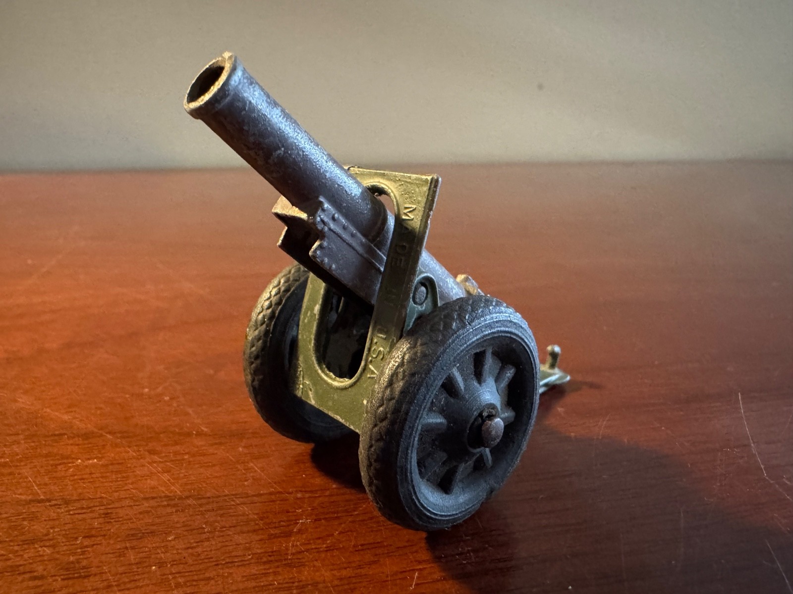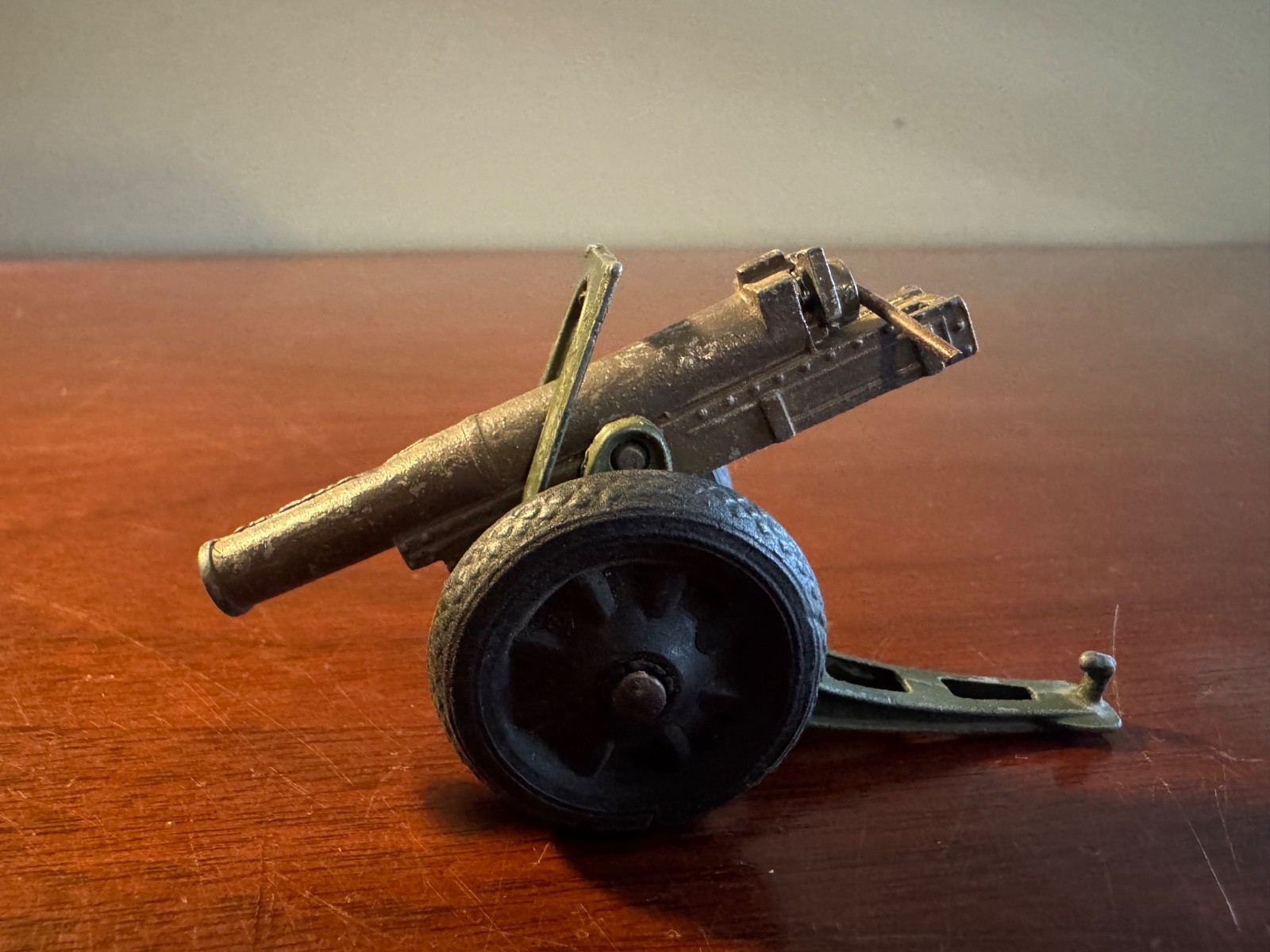 Vintage Dimestore Solider Cannon - Lead w/ Large Rubber Wheels - Very Good