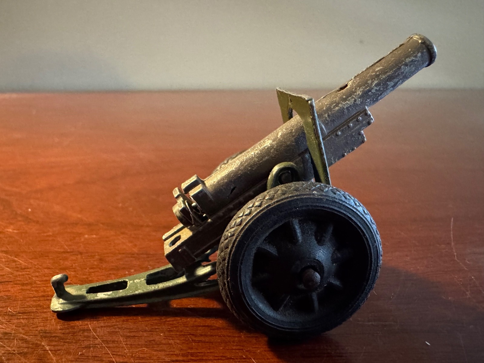 как выглядит Vintage Dimestore Solider Cannon - Lead w/ Large Rubber Wheels - Very Good фото