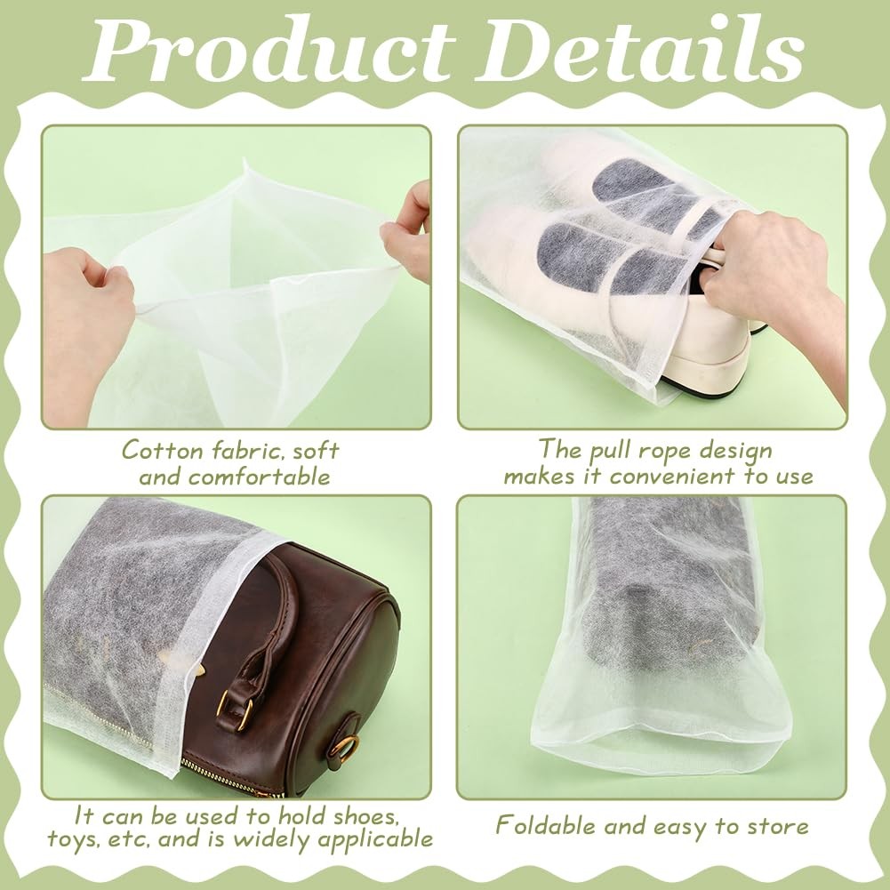 как выглядит 60 Pack Shoe Bags for Travel, 9.3 x 15 Inch Non-Woven Fabric Shoe Bags Cloth ... фото