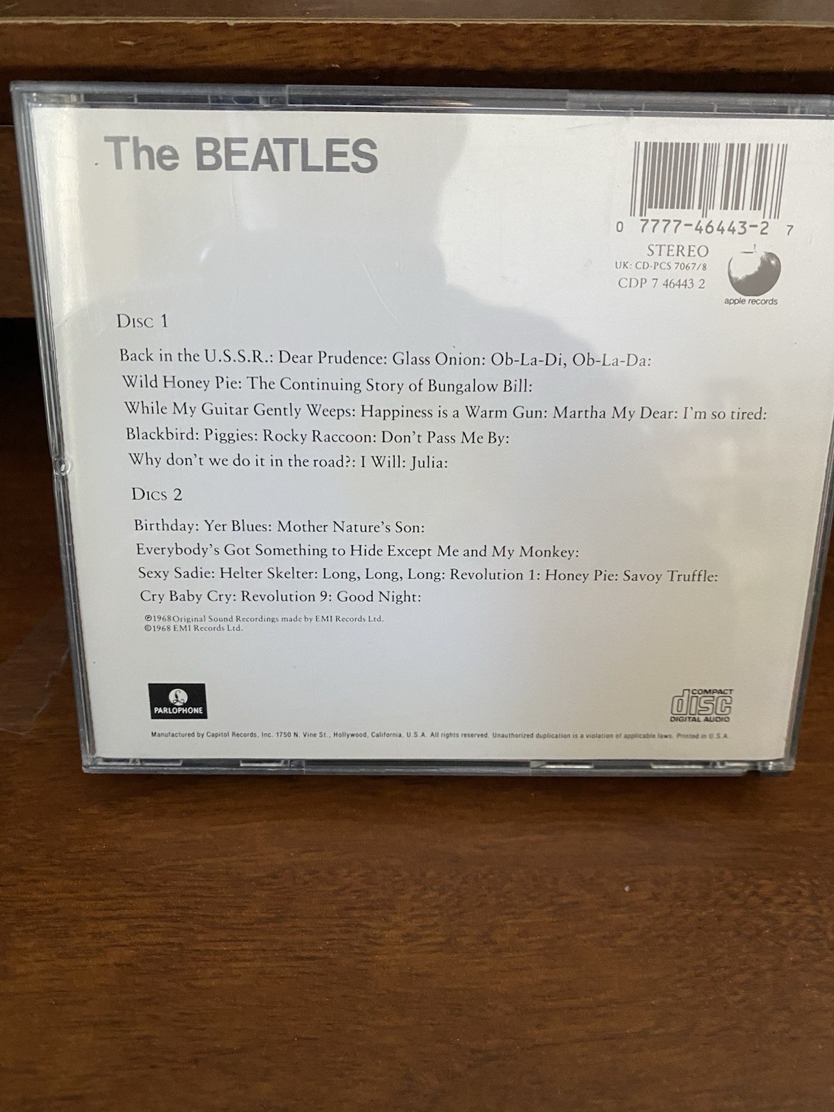 The Beatles White Album 2-CD Set Fat Box Parlophone CDP 7 46443 2 Capitol Apple