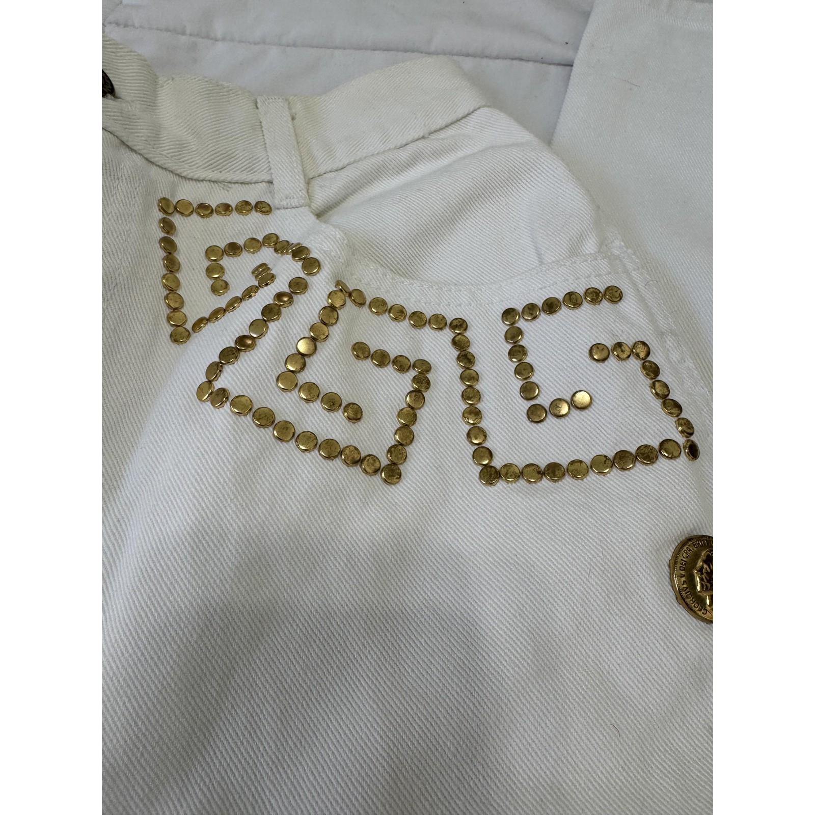 как выглядит Monique 1980 White Gold Button Accents Geometric Design Vintage Pants 28 Waist фото
