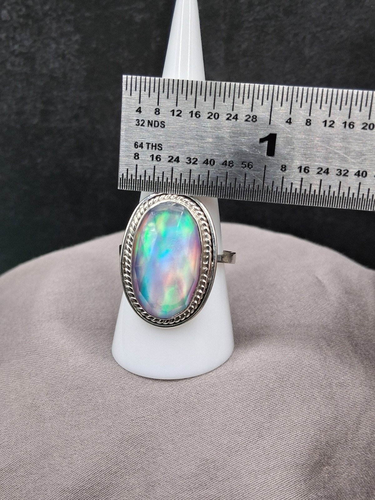 Sterling Silver Aurora Opal Ring Size 6 to 11 Boho Southwestern Style