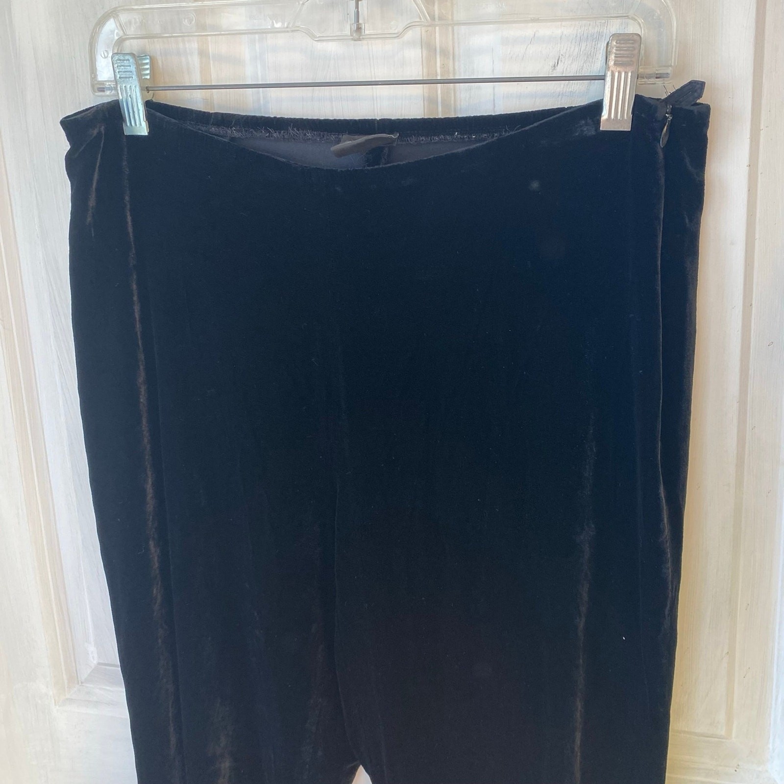 как выглядит Eileen Fisher Black Velvet Stretch Side Zipper Pants Women L Soft Quiet Luxury фото